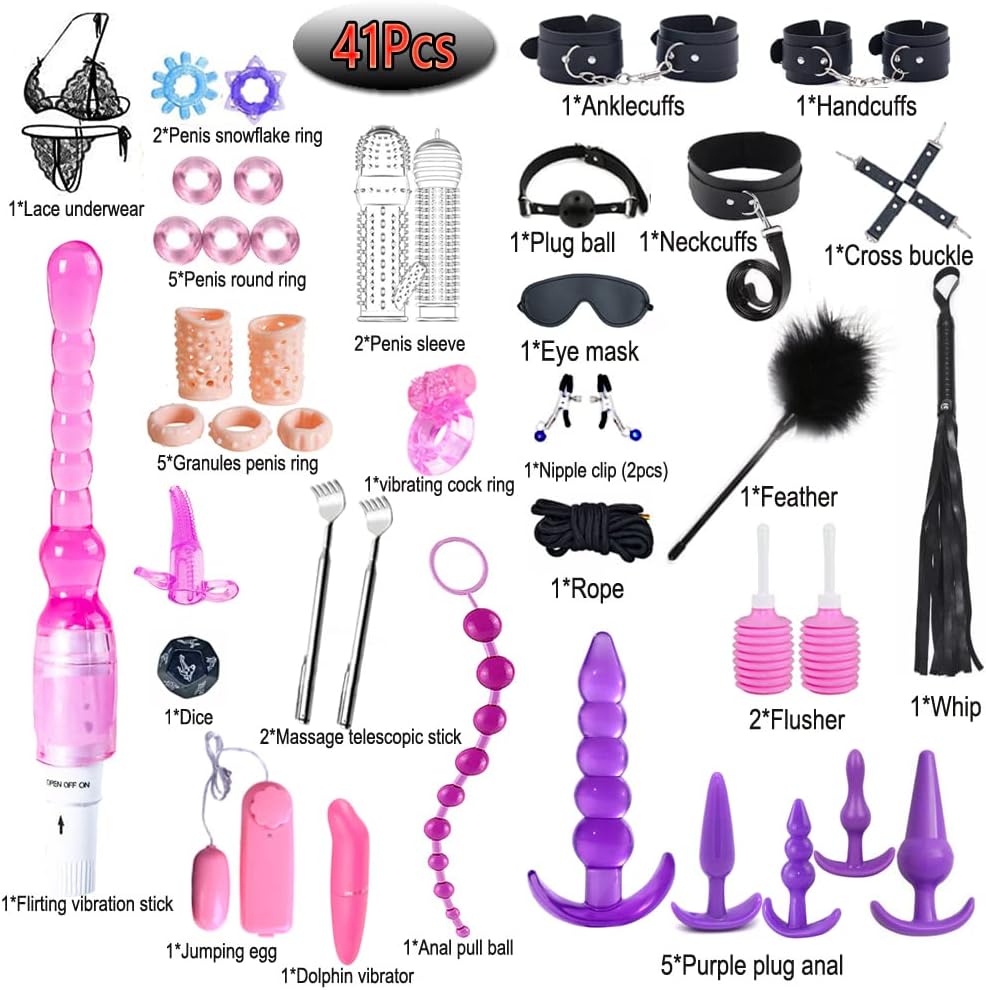 41 Pcs SM Bondage Restraint Set with Vibrator and Silicone Anal Plug