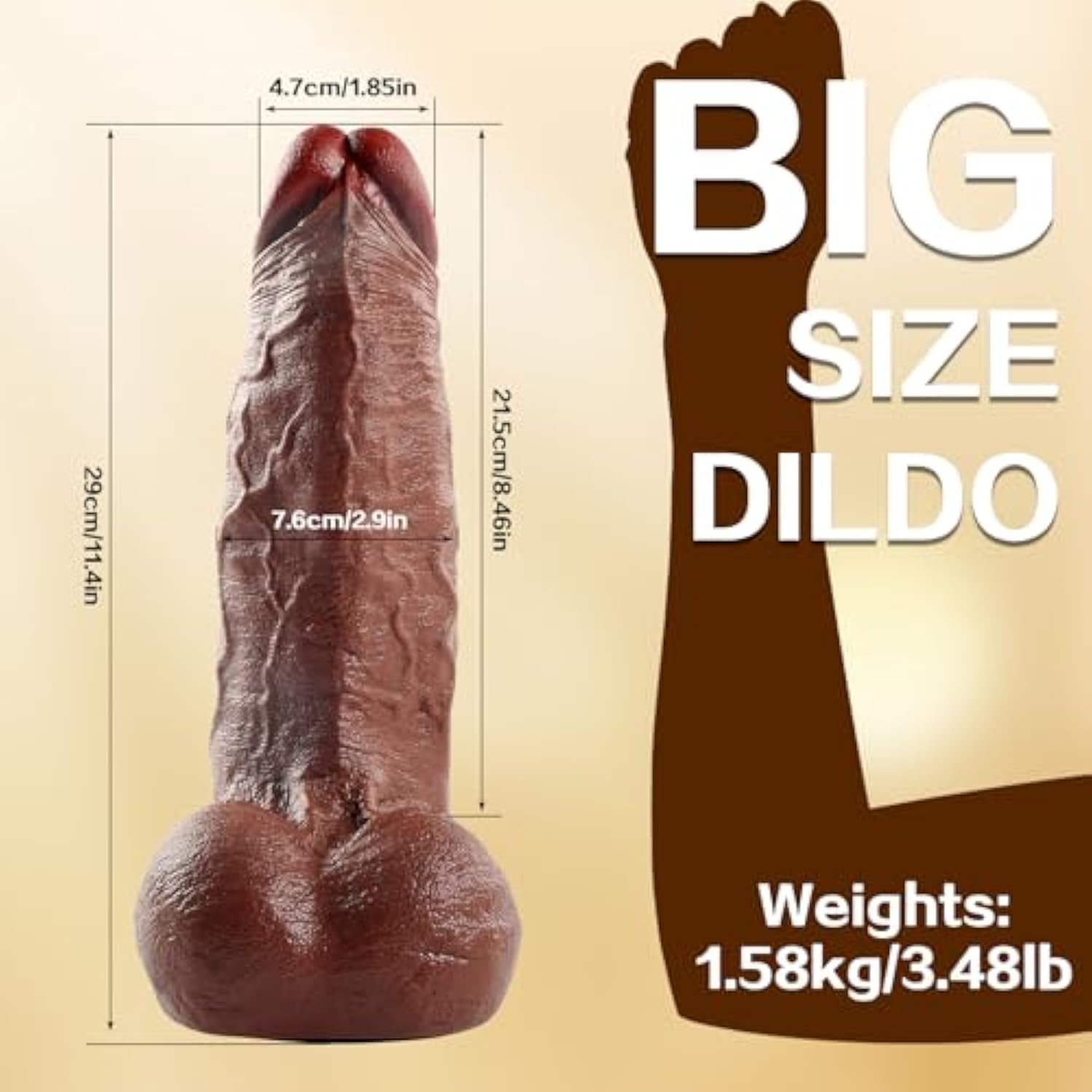 11.4 Inch Huge Dildo,Thick Realistic Dildo Brown With Strong Suction Cup, Bbc Dildo Sex Toys For Women Men Couple