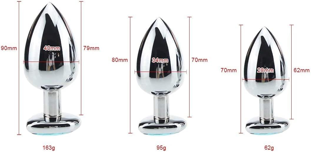 3-Piece Luxury Metal Heart-Shaped Butt Plug Set, Jewel Anal Trainer Kit, Large/Medium/Small, Red