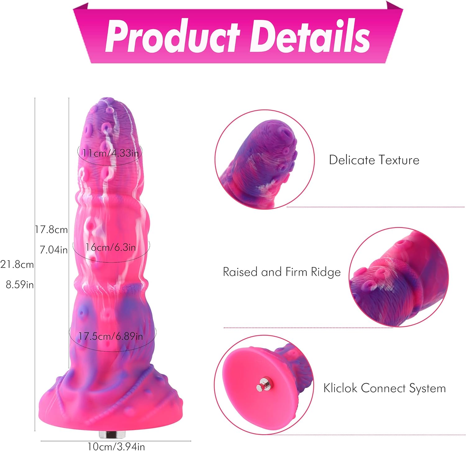 8.59″ Silicone Dildo with KlicLok System for Sex Machine, Unisex