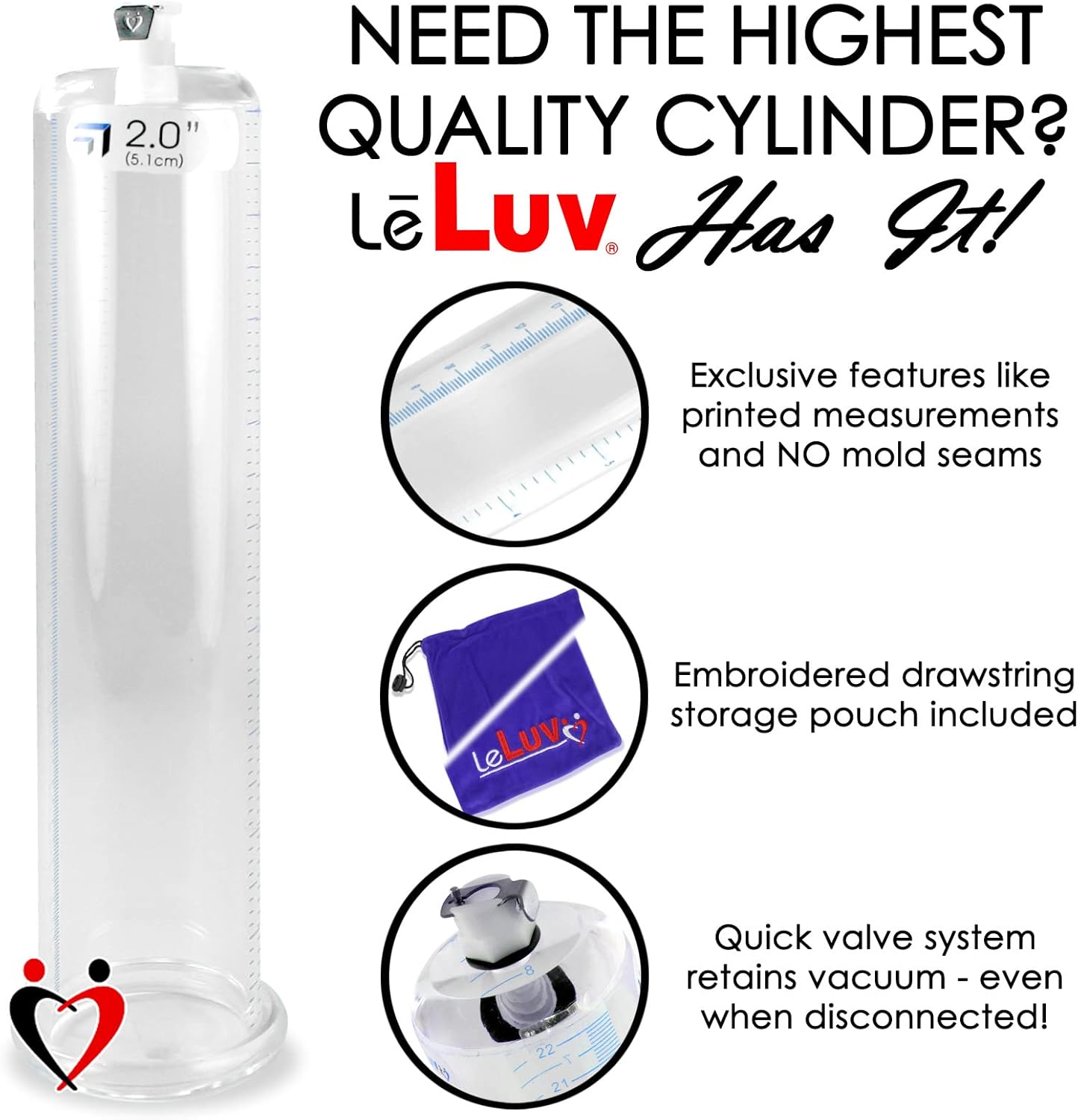 Penis Pump Vacuum Cylinder 2.125″ x 9″ Clear Acrylic Measurement Marks