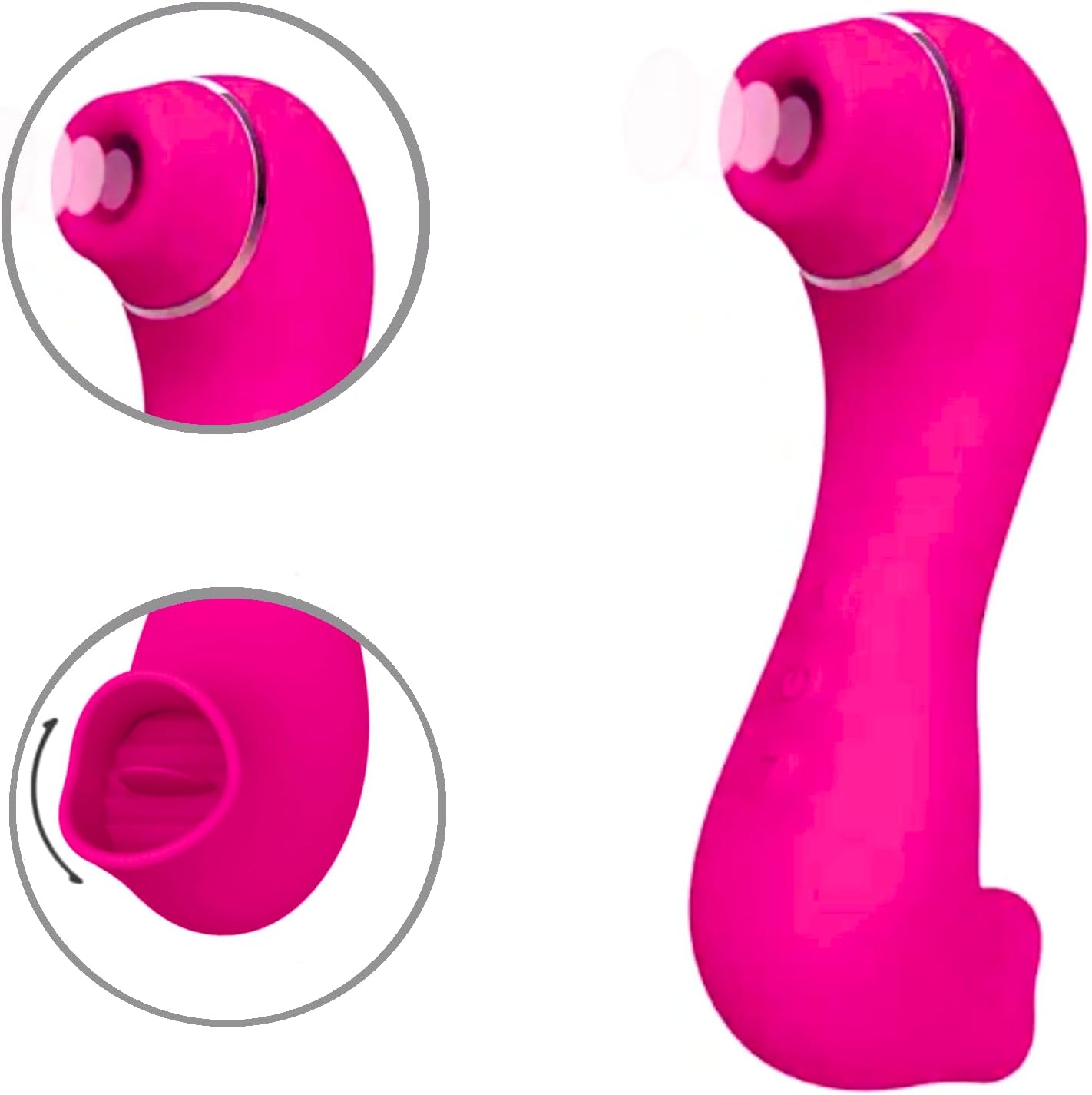 Dual Pleasure Worm Air-Pulse Clitoral Stimulator & Tongue Licking Vibrator, Hot Pink