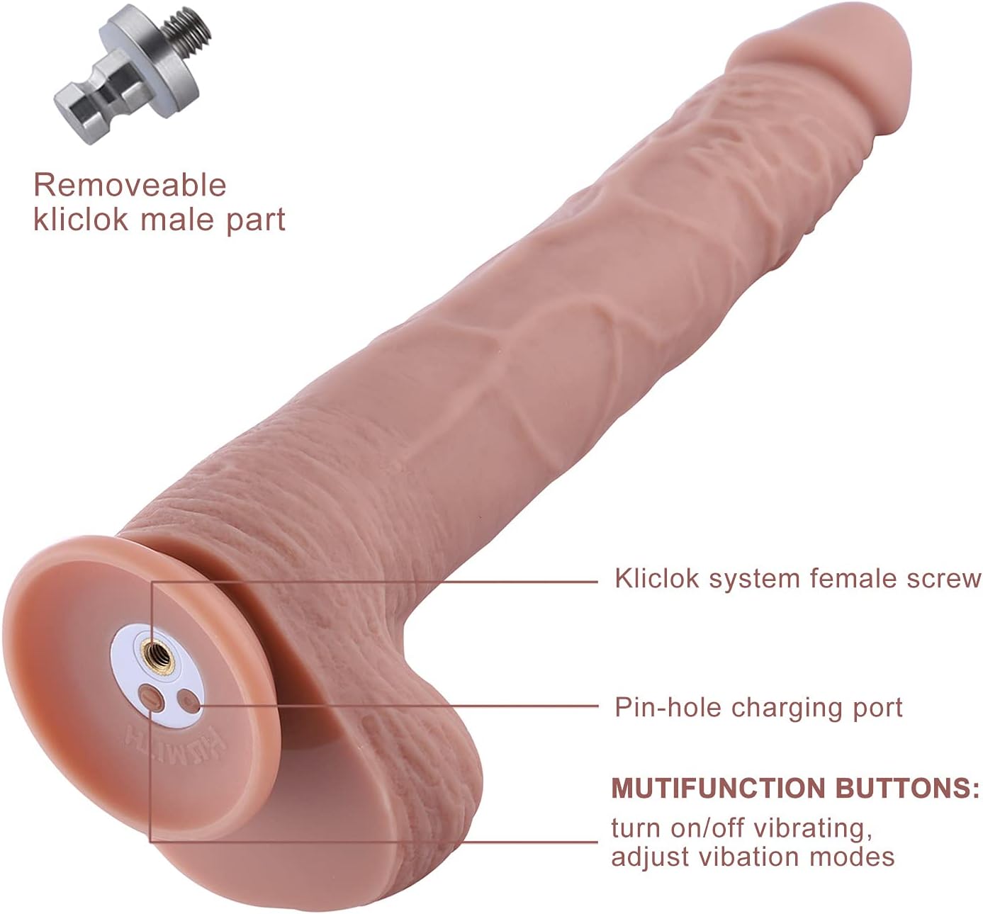 11.8 Vibrating Dildo with 3 Speeds & 4 Modes, KlicLok System: Extra-Length Silicone Dildo for Advanced Users – 9.8″ Insertable, 6.7″ Max Girth, 2.1″ Max Diameter – Amazing Series