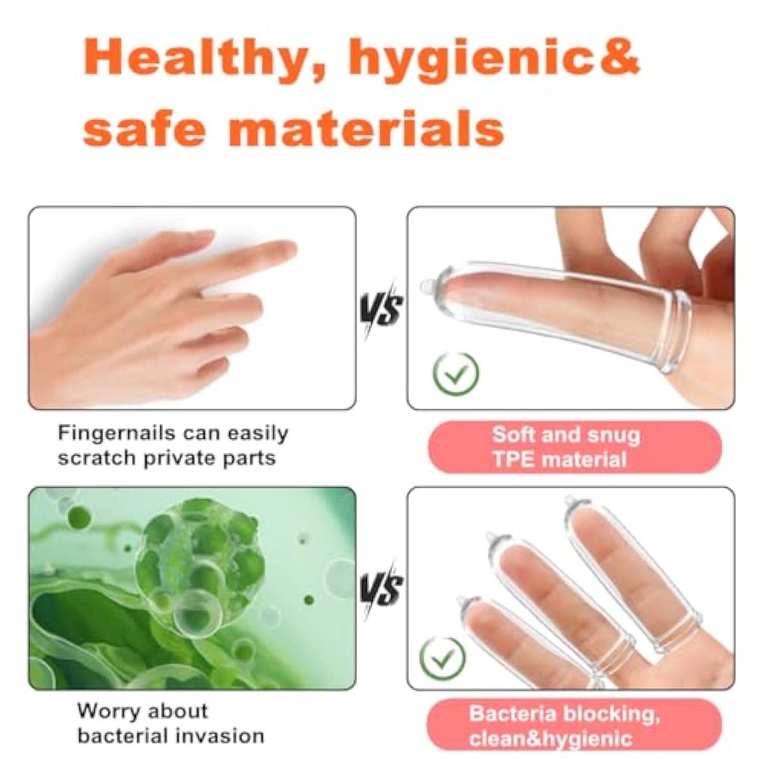 | Comfortable Fit: The Design Of This Smooth And Comfortable Finger Sex Toys Finger Massager Is Ergonomic, Suitable For Most Finger Sizes, And Will Fit You Tightly. It Is A Sex Sleeve Tool Suitable For Beginners To Work Easily. | | Fingertip Stimulation: The Head Of The Transparent Silicone Finger Protector Is Designed With Small Bumps, And The Finger Condom With Soft Bumps Can Provide More Intense Sensations And Targeted Stimulation For The G-Spot, Clitoris, And Nipples, Which Can Provide More Exploration Fun For Your Intimate Games. | | Safe And Hygienic: Wearing Masturbation Sleeve For Foreplay And Caressing Is More Hygienic. Transparent Gay Sex Toys Can Ensure Safe Intimate Play And Exploration While Providing More Intense Sensations And Targeted Stimulation For The G-Spot, Clitoris, And Nipples. | | Multi-Purpose Adult Sex Toys: Our Couples Sex Toys Are Suitable For Vaginal Stimulation Or Nipple Stimulation. You Can Use Sex Vibrators Alone Or Enjoy It With Your Partner. Not Only Can You Use It To Tease Your Lover And Relax Her Or His Body, You Can Also Use This Finger Sex Toy To Enlarge The Anus Or Vagina. | | Discreet: The Cheap Sex Toy Is Small And Portable, Suitable For Use At Home Or When Traveling Or Going Out. Give It As A Surprise Gift And In Practical Application, The Finger Sex Toy May Help Enhance Your Relationship. | | Easy To Clean. The Fun Sex Toys Are 100% Waterproof And Very Easy To Clean. Just Wash With Adult Product Cleaning Liquid And Wipe Dry Before And After Use. | |