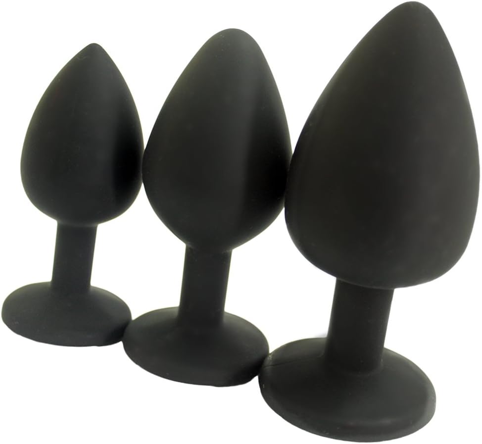 3-Piece Black Silicone Jeweled Anal Plug Trainer Set