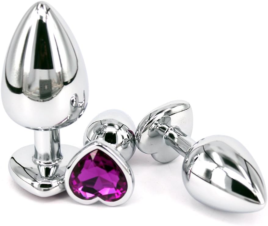 3-Piece Metal Heart Jeweled Anal Butt Plug Trainer Kit, Anal Sex Toys for Beginners
