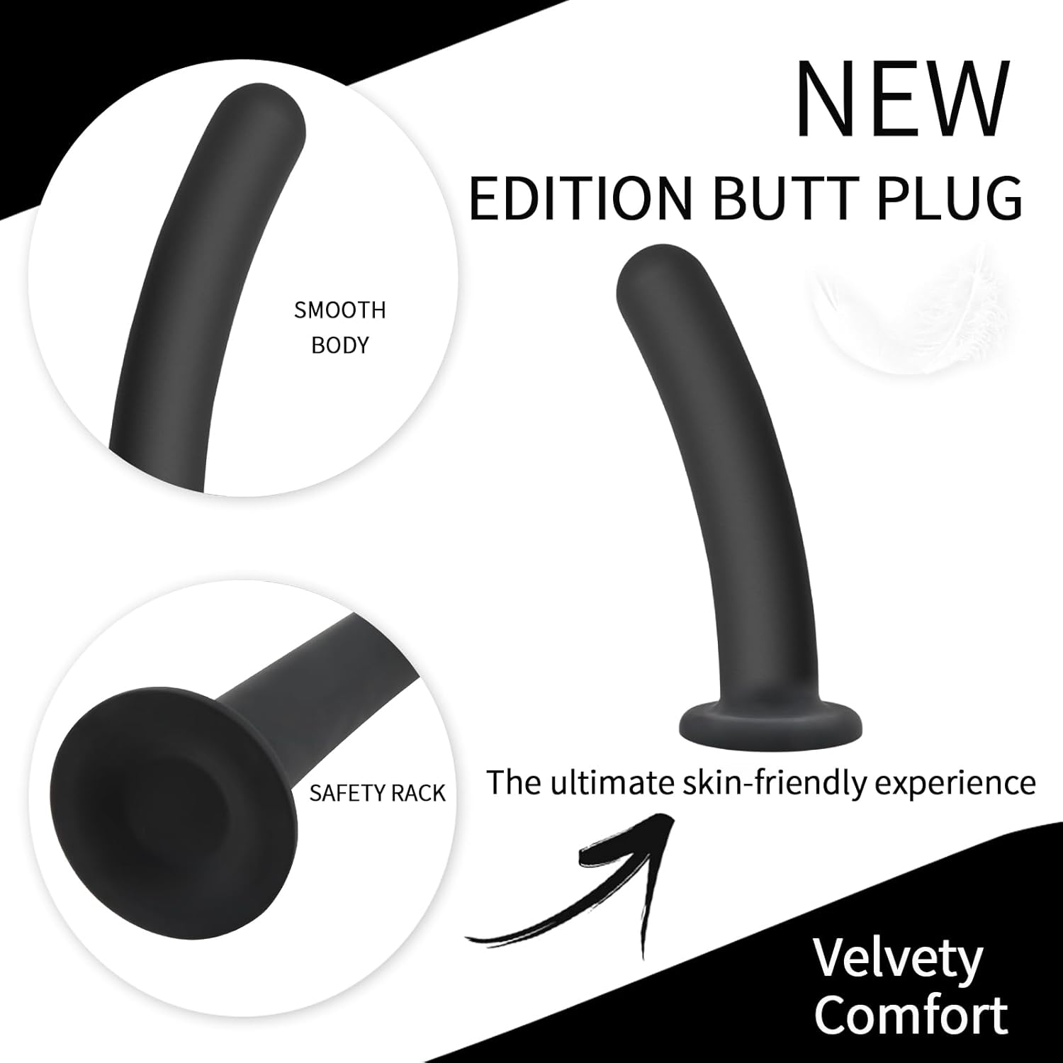 • ?? Unique Design Black Dildo – The anal plug trainers are specially designed to maximize your anal pleasure and comfort. Each plug features a curved tip that makes insertion easy when used with some water-based lube. Additionally, the anal dildo sex toy has powerful suction cups that firmly suck onto all smooth surfaces allowing you to release your hands, while the slim neck bends in different directions and flexes to better fit your body.