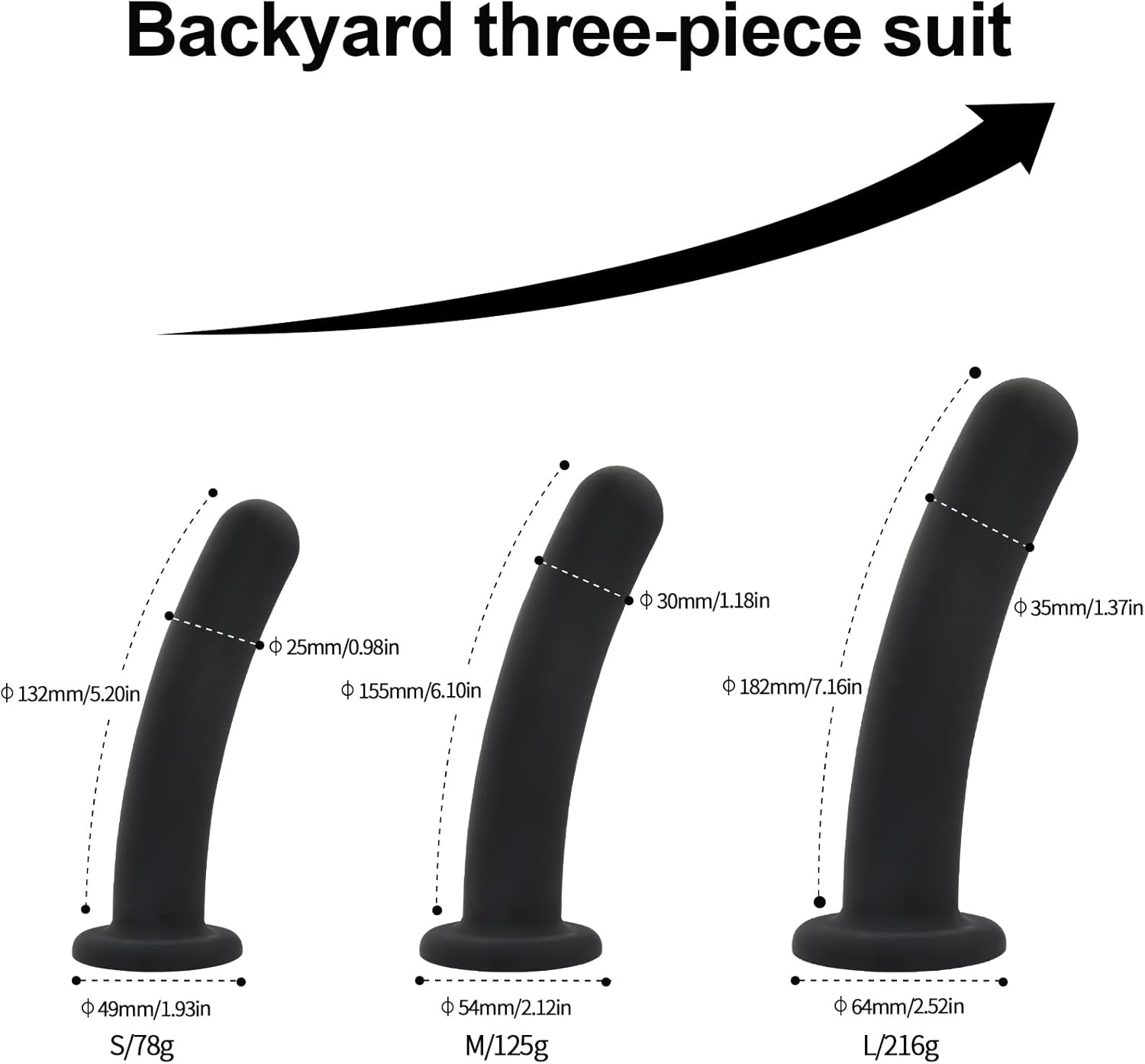 3 Sizes Butt Plugs – Silicone Dildo with Suction Cup for Anal & G-Spot Stimulation (Black)