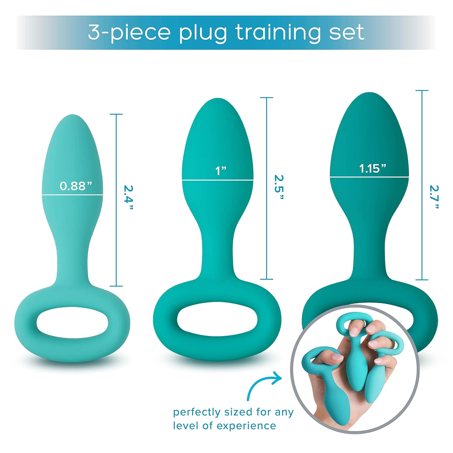 - Gender-inclusive design and 3 ascending sizes for anal training