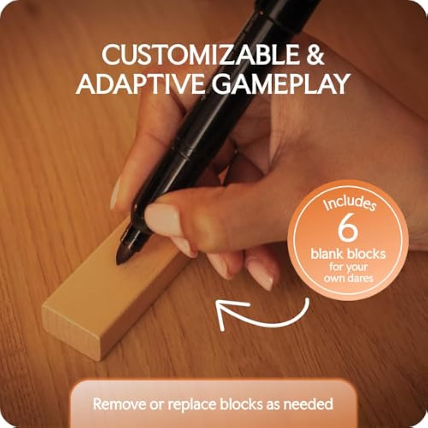 ? 6 Customizable Blocks ? : Among The 54, You’Ll Find 6 Blank Blocks To Create Your Own Dares Or Activities—Perfect For Adding A Personal Touch And Tailoring The Game To Your Relationship.