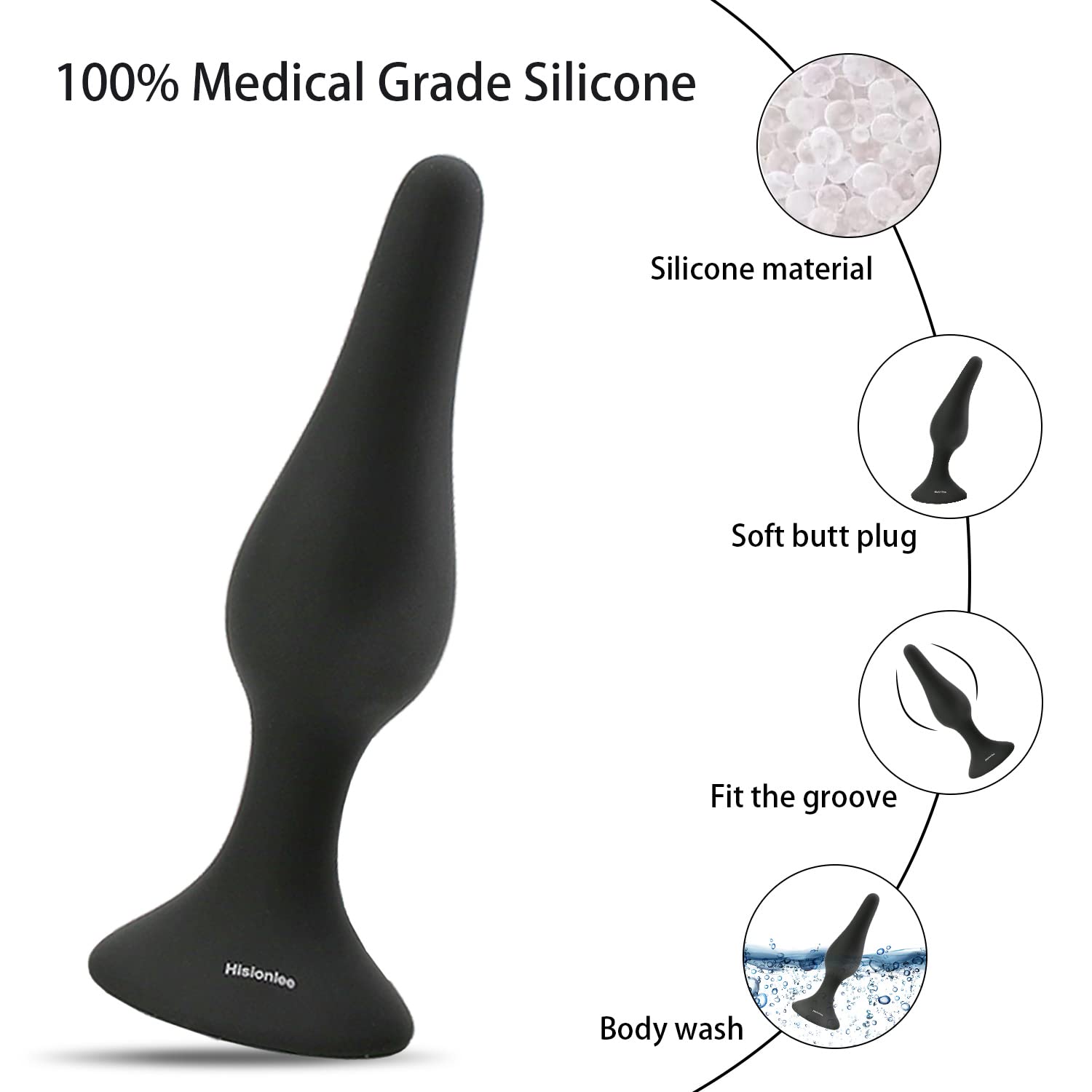 5pcs Silicone Anal Plug Set for Women, Men, Beginners (Black)