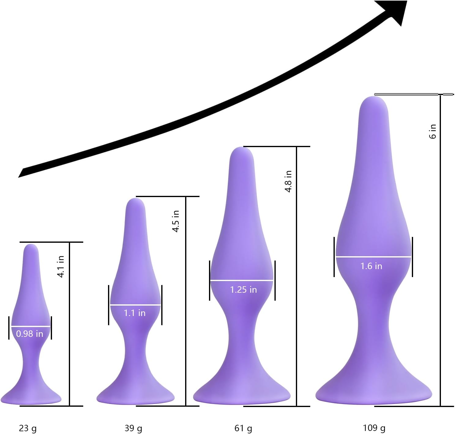 - ※ 4 Sex Toys Size – Small butt plug 4 x 1 inch, Medium anal plug 4.5 x 1.12 inch,Large sex toy 4.8 x 1.25inch, X-Large adlut toy 6 x 1.5inch; Package includes 4pcs anal plugs, Enema black 89ml and Lubricant 45g,Enema is used to treat certain types of infections; Lubricants can relax and relieve pain.