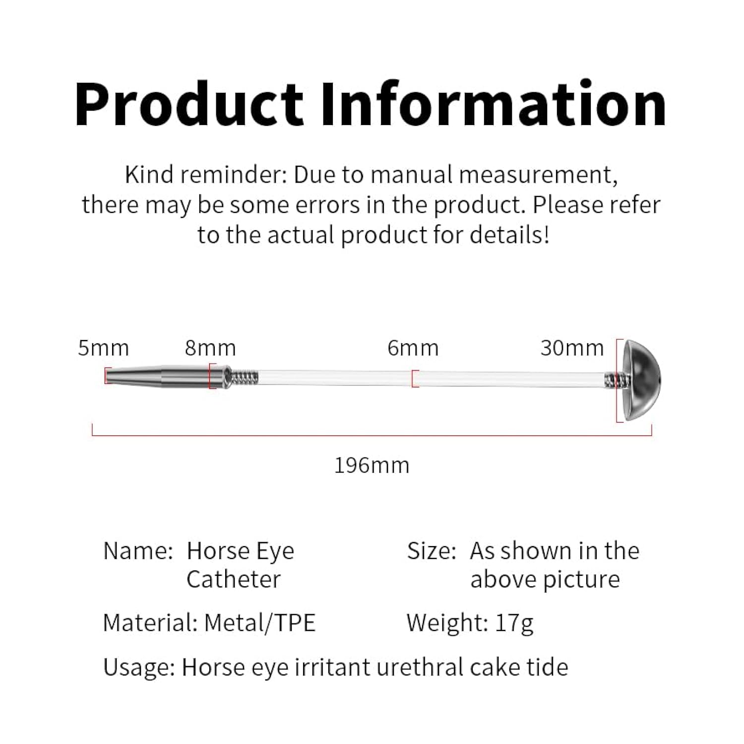 | Mushroom Head Shower Design: The Top Of This Urethral Plug Is A Mushroom Shower Design, And The Liquid Flows Out Of A Hollow Silicone Tube And A Stainless Steel Shower Head. It Is Your Mini Shower Head | | Extra Long Design: This Urethral Penis Plug Has A Total Length Of 7.48″, And It Has A Round Mushroom-Shaped Head For Easy Insertion. Insert Carefully And Push Forward Slowly To Ensure Sexual Pleasure | | Hollow Urethral Tube: The Flexible And Soft Pte Urethral Sounder Adopts A Hollow Design, And Urine Can Be Discharged Through The Silicone Tube, Which Is Convenient And Comfortable | | High-Quality Materials: This Urethral Dilator Is Made Of Metal And Tpe Material, Allowing You To Experience Different Pleasures And Orgasms. The Hollow Design Allows Urination And Ejaculation During Wearing | | Discreet Packaging: Protecting The Privacy Of Users Is Our First Requirement. All Our Products Are Packaged In A Private Way To Protect Your Privacy And Safety. If You Have Any Questions, Feel Free To Tell Us | |