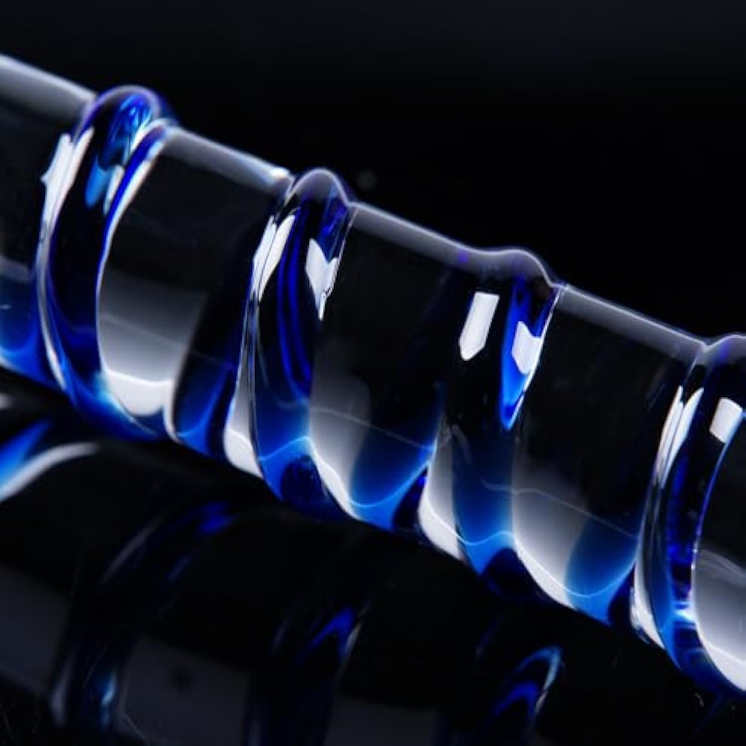 7.9 Inch Double-Ended Glass Dildo, Blue Spiral Ribbed Crystal Clear Anal Dildo, Dual-Headed Beaded Dot Sensation Wand,Double-Ended G-Spot Prostate Vaginal And Anal Massager Sex Toy For Men And Women