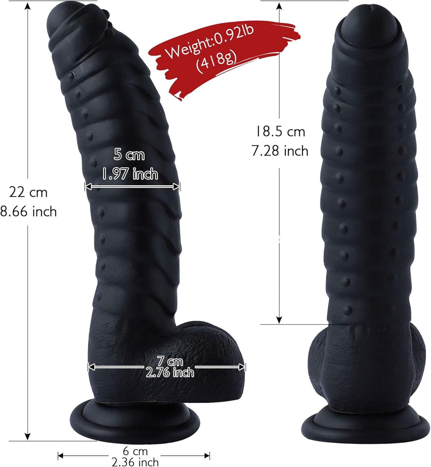 8.66” Realistic Silicone Dildo – Strong Suction Cup, Large Black Adult Toy