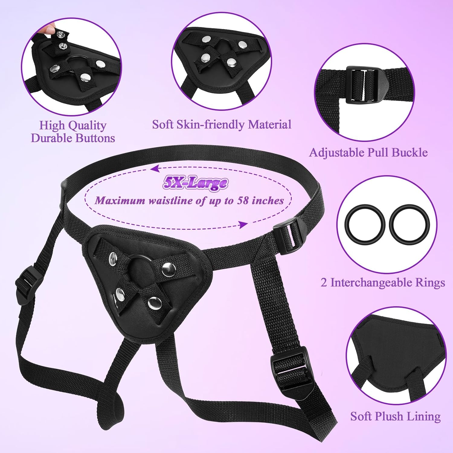 Adjustable Strap-On Harness: Our high-quality, soft harness offers a comfortable and secure fit. It features adjustable straps and snap fasteners for easy and personalized use across various waist sizes.