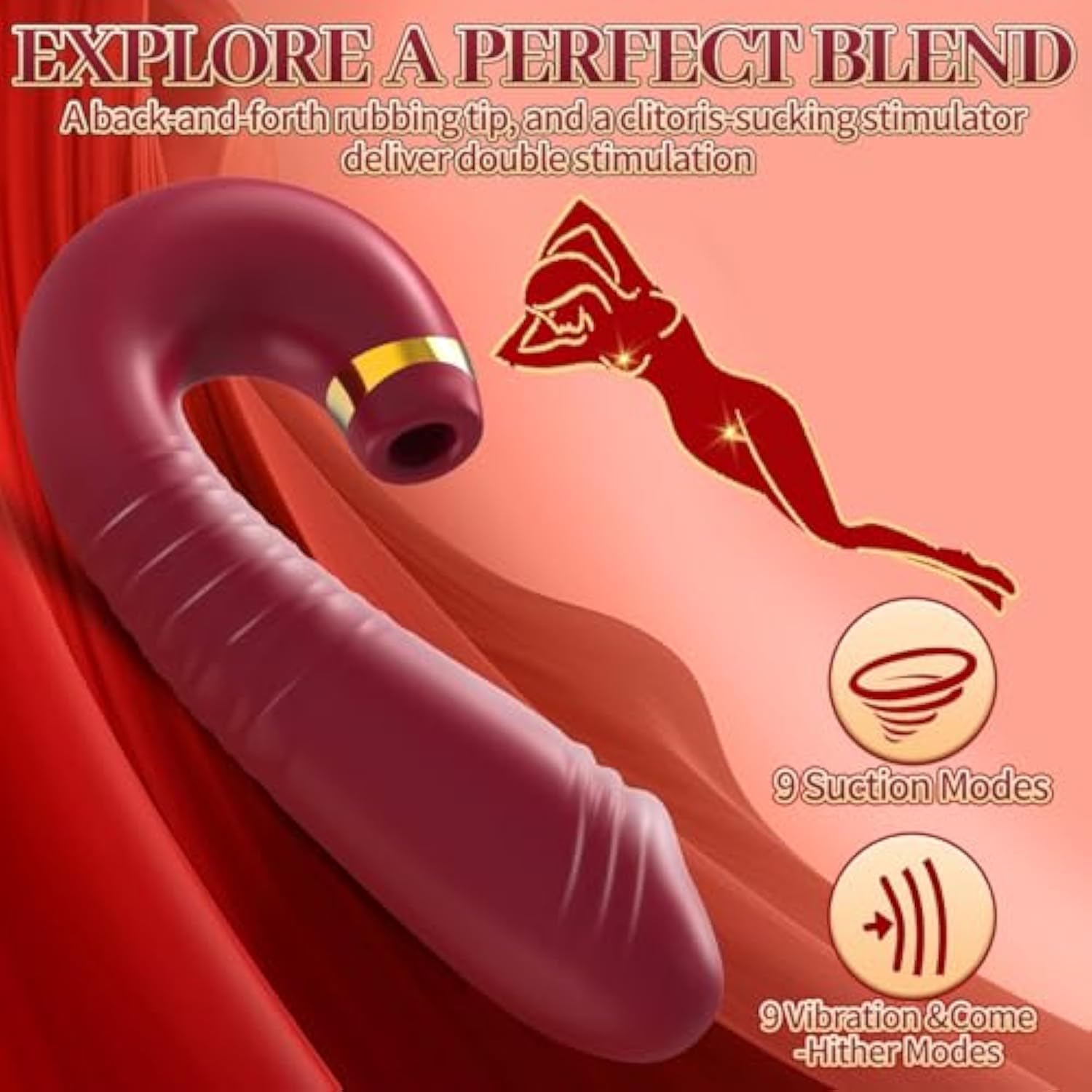 Adult Sex Toy Vibrator Dildo – 2In1 G Spot Clitoris Stimulator With 9 Thrusting + 9 Suction, Adult Nipple Clit Anal Forplay Sucker Games For Female Women Men Couples Red