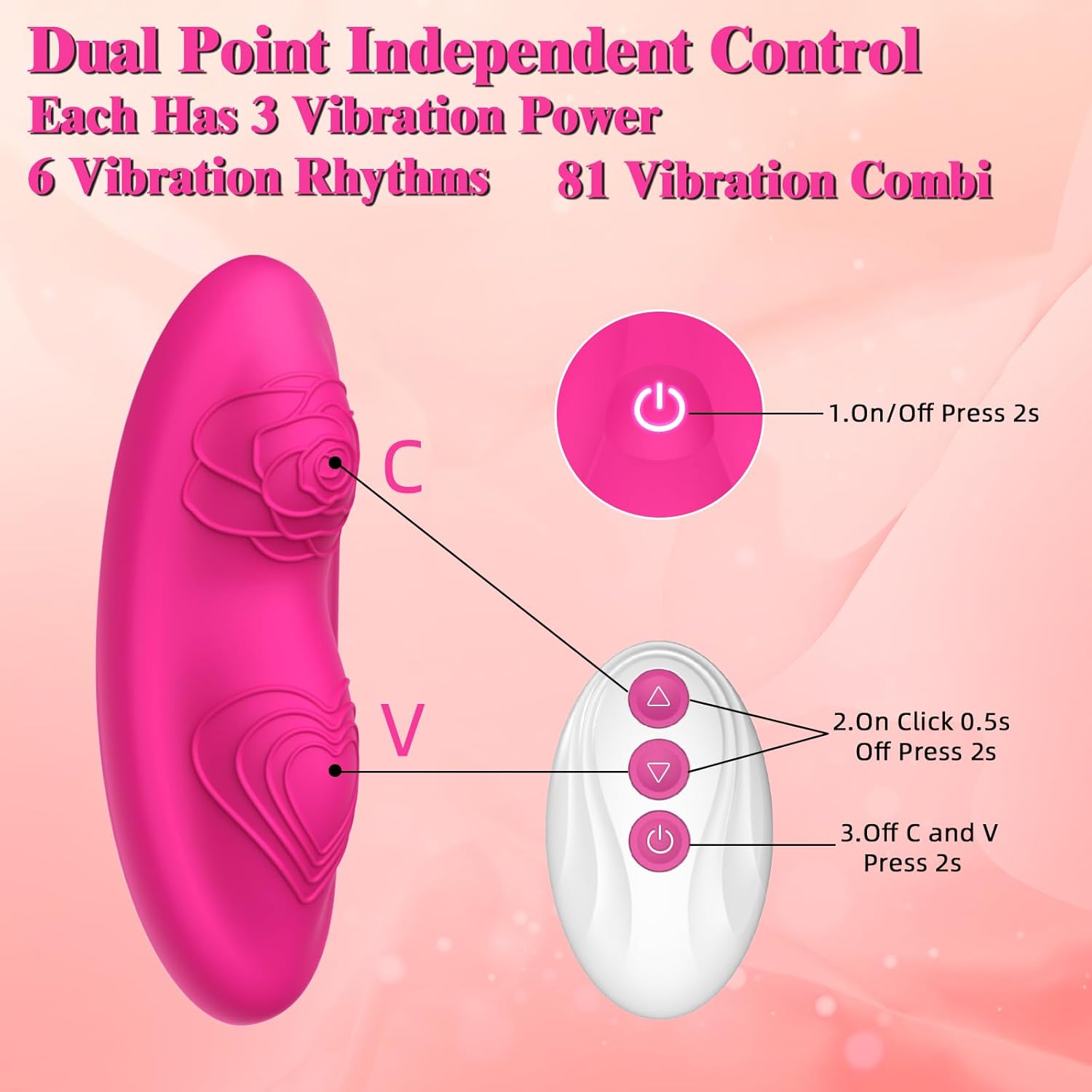 • Dual Motor 81 Vibration Independent Control: There are 9 modes for each vibration point. Two vibration points can be controlled independently or in combination. The maximum number of combined use modes is 81. Easily find the right spot for your favorite.