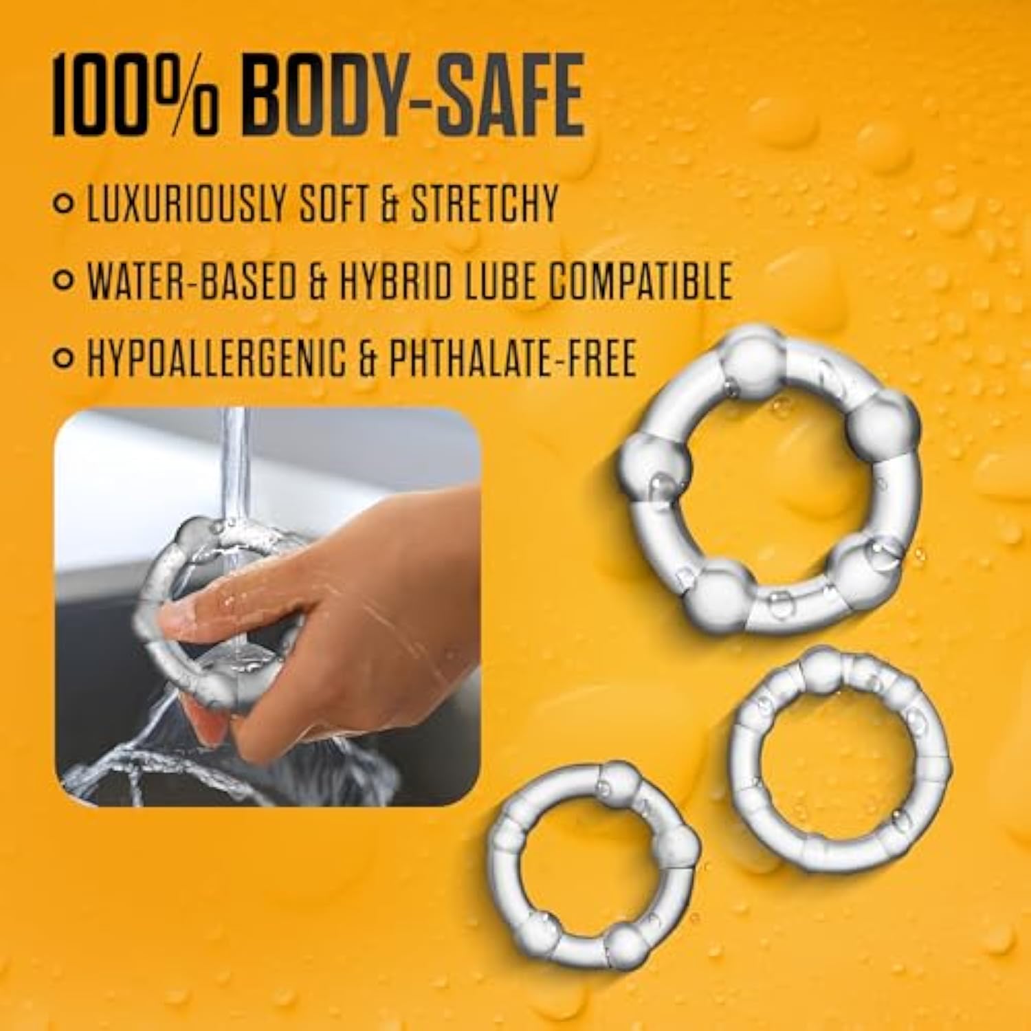Adult Sex Toys – Stay Hard Beaded Cock Ring Set – Super Elastic Erection Enhancer Penis Rings – Tear Resistant – One Size Fits All – Sexual Wellness Pleasure For Men, Couples – Clear
