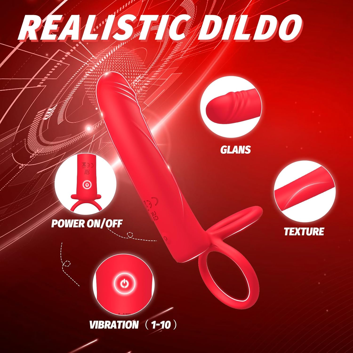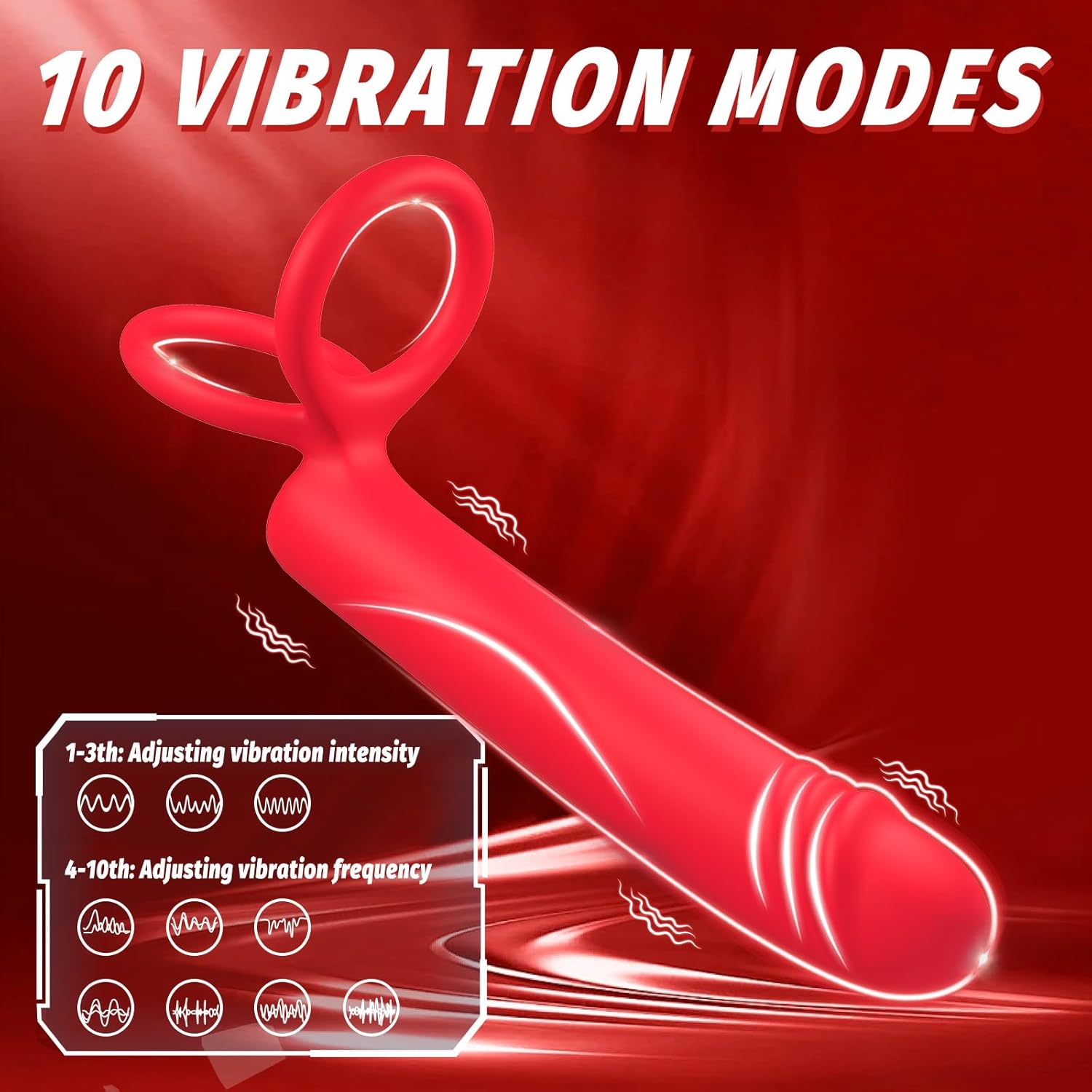 Anal Dildo Vibrating Cock Ring with 10 Modes Strap-On Butt Plug