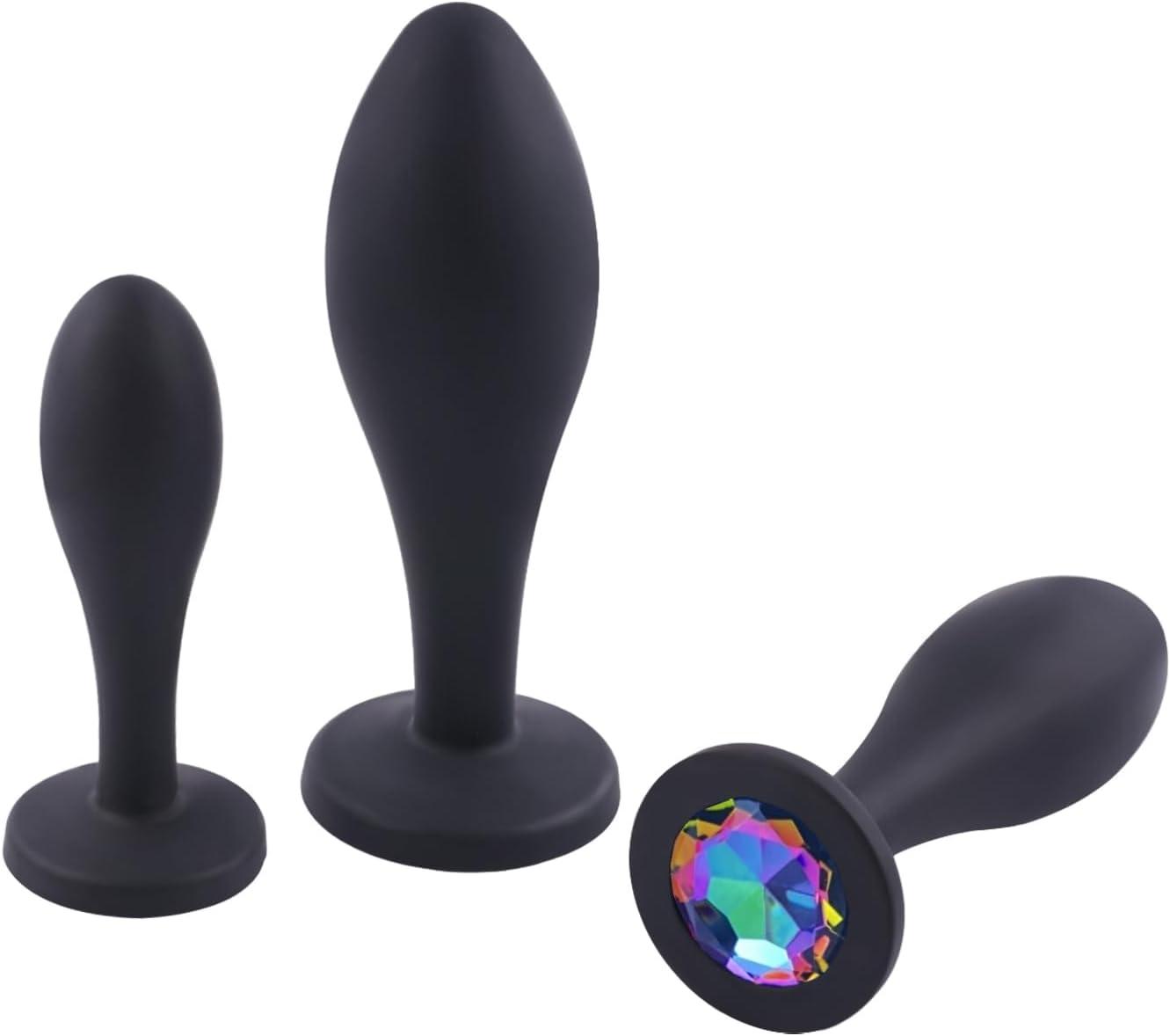 Anal Plug Training Kit – 3 Jeweled Anal Toys, Multicolour, for Women, Men, Couples
