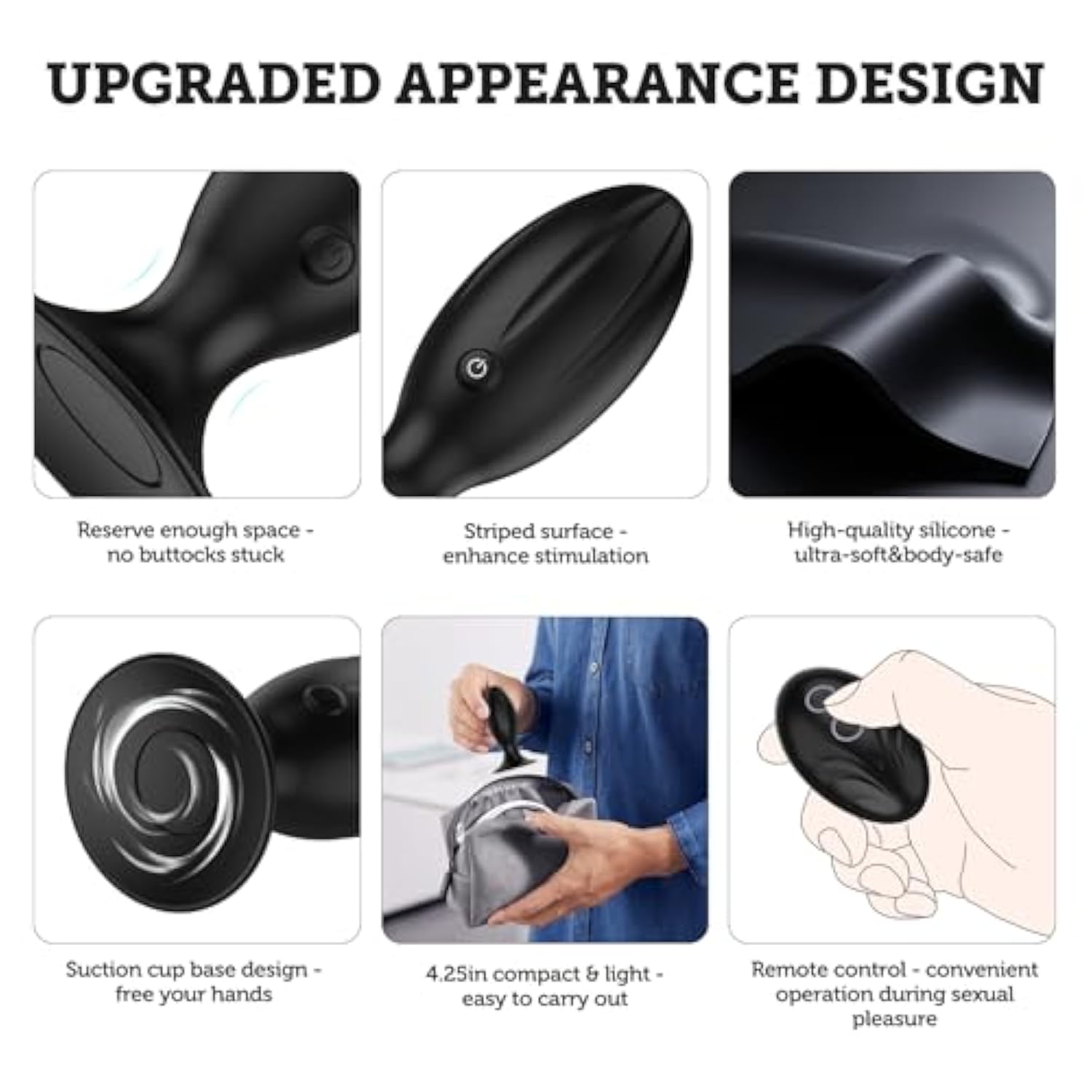| ???12 Vibrations Modes ? This Anal Vibrators Sex Toys Has 12 Vibration Modes(Noise ≪60Db), A Powerful Motor, Each Mode Can Bring A Different Sexual Experience. This Anal Toys For Advanced Male And Female Players Will Make Your Butt Feels Tighter, Efficiently Stimulate All The Sensitive Nerves In Your Anal And Bring The Ultimate Pleasures For You. | | ??Strong Suction Cup Base?The Vibrating Butt Plug Adopts A Strong Suction Cup Base Design, Making The Sex Process Of All Players More Flexible And Convenient. This Suction Cup Anal Trainer Can Be Used On Smooth Horizontal And Vertical Surfaces (Such As Tiled Floors And Walls), Freeing Your Hands And Immersively Enjoying The Stimulating Experience Of Anal Sex. Keep You Stable And Safe At The Same Time. | | ??? Designed Specifi