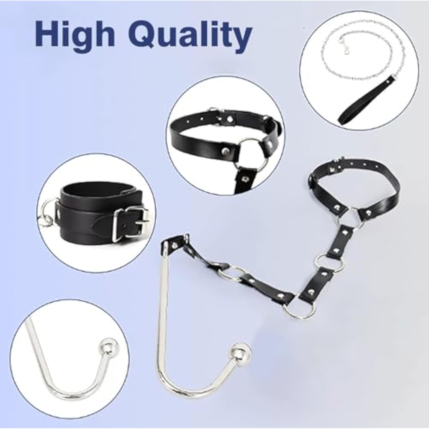 | Pu Leather And Metal | | Imported | | ??Bdsm Bondage Set: Anal Hook Sets Include: Collar, Chain, Anal Hook, All Bdsm Set Accessories Can Be Used Together Or Separately, Multiple Play Styles For Every Taste. The Curved Shape Of The Anal Hook Makes It Easy To Penetrate The Anus And Give The Slave Anal Stimulation And Multiple Orgasms. | | ??Material: Made Of High-Quality Leather And Stainless Steel Materials, It Is Safe, Soft And Wear-Resistant. The Material Has Strong Toughness And Can Withstand High-Intensity Exercise. It Can Be Used For A Long Time And Repeated Many Times. | | ?Adjustable: The Size Can Be Adjusted To Fit Most People. There Are Many Ways To Play For Your Challenge! The Bdsm Anal Hooks Bring The Joy Of Cosplay, Bondage And Discipline, Dominance And Submission. The Curved Shape Of The Anal Hook Facilitates Penetration Into The Anus And Provides The Slave With Anal Stimulation And Multiple Orgasms. | | ??Unleash Your Imagination: Ignite Passion And Spice Up Your Intimate Encounters With Our Fetish Bondage Restraints Set. Designed For Couples’ Roleplay Games, This Versatile Kit Encourages Exploration And Creativity, Enabling You And Your Partner To Craft Unforgettable Experiences Together. | | ??Excellent Service: We Pride Ourselves On Providing Excellent