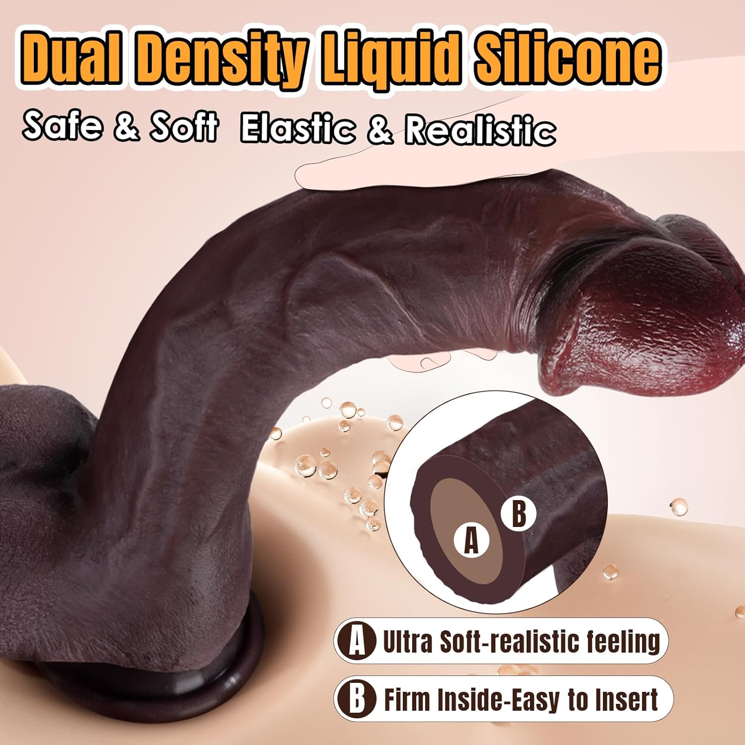 Dual Density Dildo with Big Size : The dildo is definitely sex toy for you. With insertable length 8.26″ and insertion width 1,85″ diameter, total length of this sex toy is 10.8 inch, its the perfect dildo for personal pleasure or a little fun with your partner, making it easily to stimulate g spot or anal part. Real feel design, make you more sexual wellness feelings, with solo play or with partners, or couples sex toys