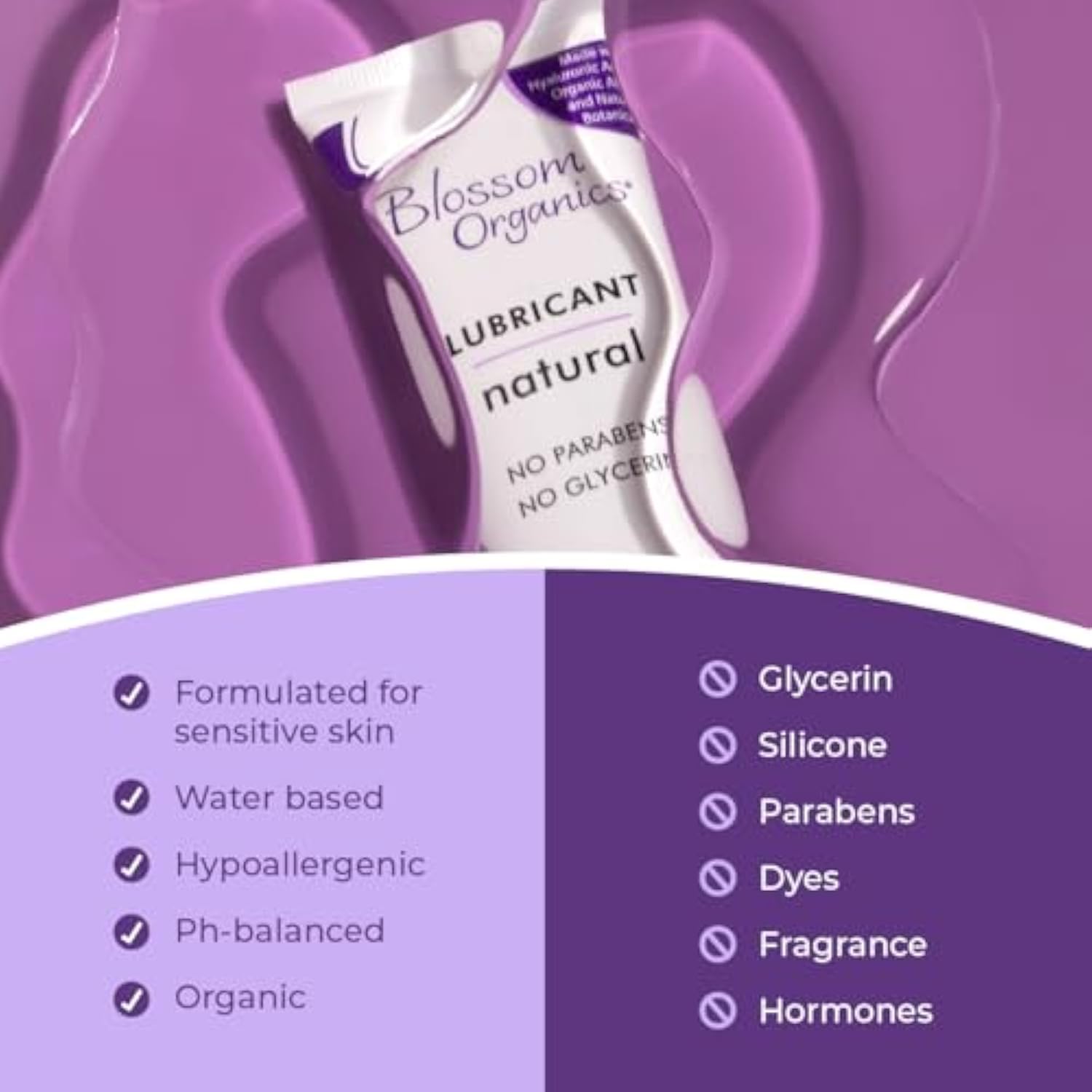 | Designed With You in Mind: Crafted by a woman for women, our lubricant is pH balanced, mirroring a woman’s natural chemistry. It’s also FSA and HSA eligible, making it the perfect choice for enhancing intimate health and enjoyment. | | Gentle Yet Effective: Featuring an all-natural, aloe-based formula, Blossom Organics ensures a non-irritating, gentle experience. Perfect for daily use, it alleviates vaginal dryness and enhances comfort without the use of harsh chemicals. | | Plant-based and Body-Safe: Embrace a healthier, sustainable choice with our Vegan-friendly and Gluten-free personal lubricant. Free from GMOs, our product is developed with your body and the planet in mind, offering a guilt-free path. | | Pure Experience, No Compromise: Experience the ultimate in intimate lubrication without artificial additives. Our formula is paraben-free, glycerin-free, alcohol-free, and artificial- fragrances-free, ensuring a pure and pleasurable experience. | | By Blossom Organics: We spent over 20 years pioneering the sustainable personal care space. With a commitment to naturally pure and safe products, we craft intimate care solutions that embody quality and integrity. | |