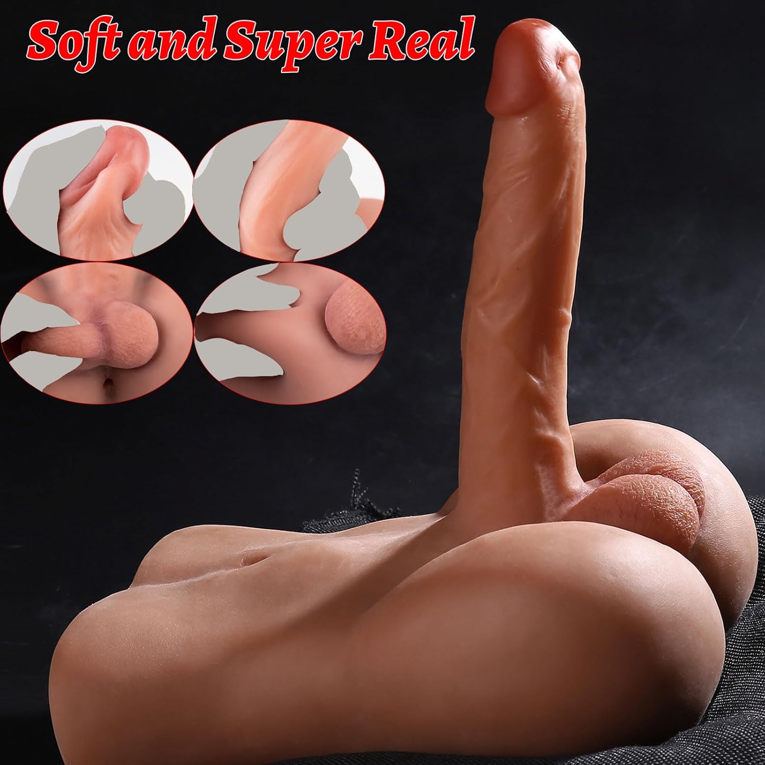 • ?Realistic Sex Doll with Flexible Penis Dildo?The male torso sex doll have a realistic huge dildo (Length:8.0in/20.3cm, girth: 5.1in/13.0cm). This mens sex doll comes with a dildo that looks like a real penis and designed with balls and veins.The dildo is flexible enough and bendable match the position and angle you prefer to reach the orgasm you desire.