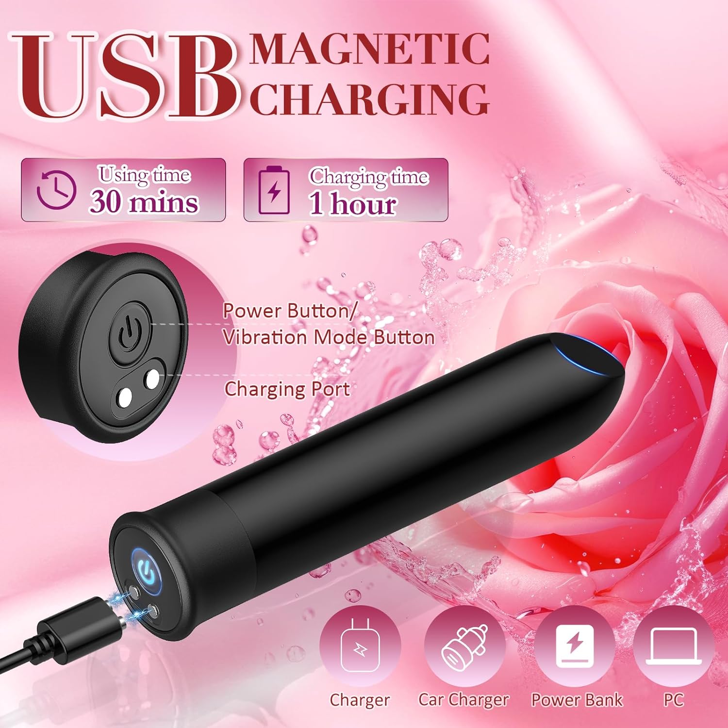 [Rechargeable For More Power] Now With A Usb Charging Cable, Recharging Your Bullet Is Even Easier. Simply Plug Into Your Pc, Laptop Or Usb Converter For 30-Minute To Enjoy Up To 1-Hour Of Play. It Means You Can Charge Quickly For Deceptive Strength.