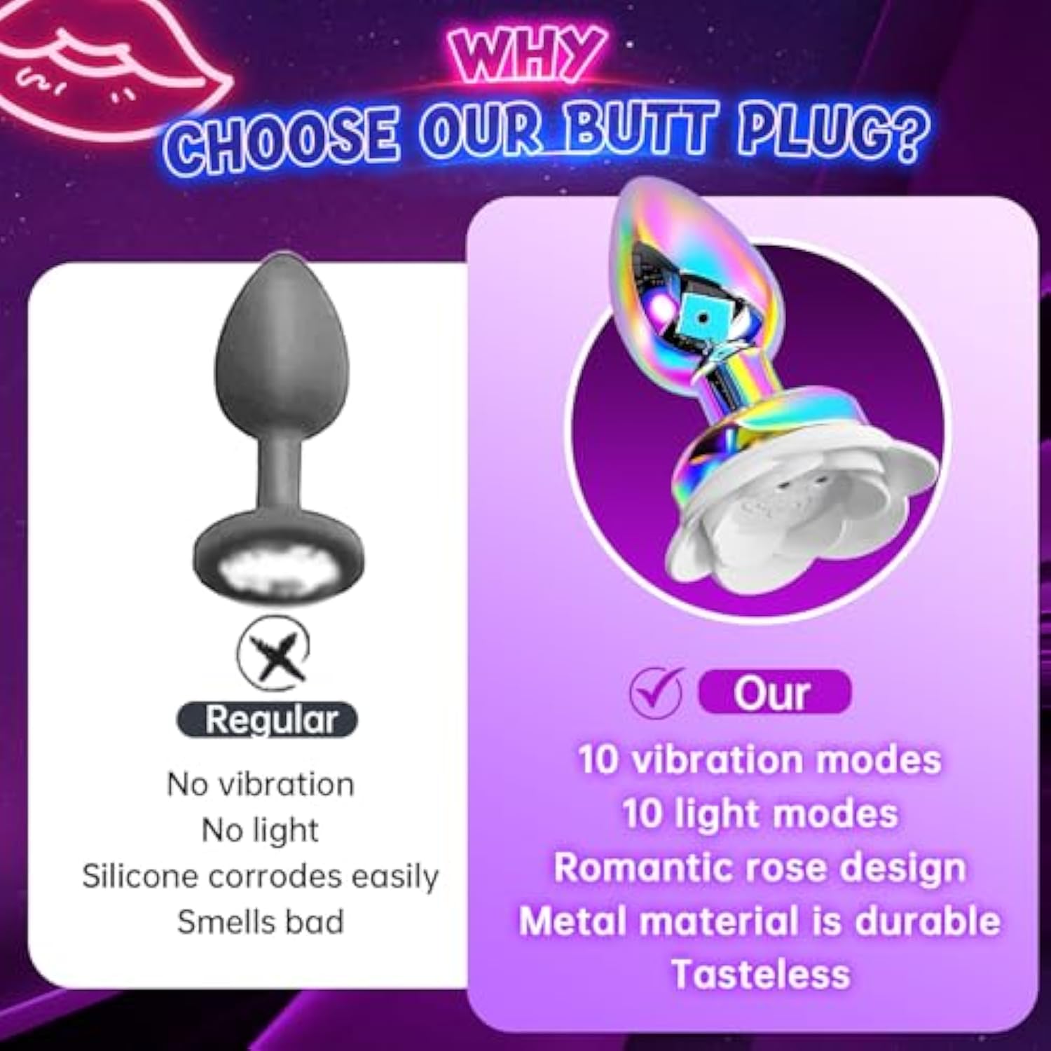 4In1 Remote Control Led Vibrating Rose Metal Anal Plug:This Is A Powerful Adult Sex Toy That Integrates Vibration, Light, Remote Control And Rose Base. Made From Smooth Stainless Steel, This Cute Butt Plug Is Shaped For Easy Insertion And Delivers An Amazing Blissful Experience With Its Small But Satisfying Weight. Runs Silently For Uninterrupted Stimulation, Play With Confidence Anytime, Anywhere. It’S The Best Anal Sex Toy For Women Or Vibrator For Men, Also Suitable For Solo And Couple Play | | Rose Base Anal Plug With 10 Fashion Light Up: This Anal Toy Has A Unique And Elegant Design With A Romantic Rose-Shaped Base And 10 Fashion Led Lighting Modes. Compared With Traditional Butt Plugs, This Rose Base Is Big Enough Can Prevent Any Too-Deep Slips. Hit The Button Of The Anal Vibrator To Activate And Switch Through 10 Light And Vibrating Modes. You Can Wearing This Adult Toys To The Rave Or Party At Night.Fun And Colorful, Lighting Anal Plugs Bring A Surprise On The Night | | 10 Vibration Modes Anal Plug: The Anal Vibrator Offers 10 Distinct Vibrating Modes And Comes With A Light Up Anal Plug Base. You Can Easily Switch Between Modes Using The Rose Sex Toy Bottom Button Or Remote Control, From Slow To Fast, Light To Strong. Every Time You Switch Vibration Mode Of The Anal Sex Toy, The Rose Base Will Change A Color, You Can Find The Perfect Mode For Your Ultra-Satisfying Stimulation.Take Hands-Free Anal Play To New Levels Of Orga Bliss With Stylish Anal Toys | | Odorless And Durable Men’S Sex Toy:This Sex Toys For Men Is Made Of Premium, Odorless Metal Material. Its Silver Exterior Is Both Stylish And Stain-Resistant, And It’S Completely Sealed So Nothing Stays On The Surface. This Vibrating Butt Plug Has A Smoother Surface Than Silicone, Making It More Comfortable To Use. The Metal Material Also Makes It More Durable And Long-Lasting | | Whisper Quiet Portable: The Rose Butt Plug Is Small Enough To Be Carried In Your Pocket Or Handbag, One Of The Best Travel Vibrators. The Noise Of The Anal Sex Toy Is ≪60Db, Enabling You To Enjoy This Vibrator In A Quiet Environment. Wherever You Go, This Adult Sex Toys For Women Perfectly Simple And Stylish Anal Plug Sexual Toys Also A Vibrating Dildo Will You Having Fun | | Usb Magnetic Recharging Anal Plug – Our Women Sex Toy Has A Magnetic Rechargeable Design, With A Usb Magnetic Charging Cable, It Adapts To Various Chargers So That This Small Anal Plug Can Be Charged At Any Time. The Anal Vibrators Can Run Up To 60 Minutes Fully Charged Of High-Speed Stimulation. The Female Sex Toy Provide A Remote Control Will Allows You To Enjoy Sex Happy And Adds More Sex Surprises For You And Your Partner.Sex Toys For Men | | Ipx6 Waterproof Easy To Clean – This Prostate Vibrator For Men Adopts Laser Metal Anal Plug And Silicone Rose Base Design. There Is No Charger Hole On The Butt Plug, It’S Usb Magnetic Recharging. So The Waterproof Level Is Improved And Easier To Clean.You Can Be Used This Butplug In The Shower And Clean Up Easily With Warm Water And Soap Or Sex Toys Cleaner After Use This Anal Plug. Tips:The Remote Control Is Not Waterproof, Just Anal Vibrator Waterproof | | Discreet Package Vibrator- The Metal Butt Plug Is Great Gift As Couples Sexy Gifts, Very Suitable For Adult Sex Toys Games. Our Male Sex Toys Packages Are Shipped In Discreet, Unmarked Packages To Ensure Your Privacy. Please