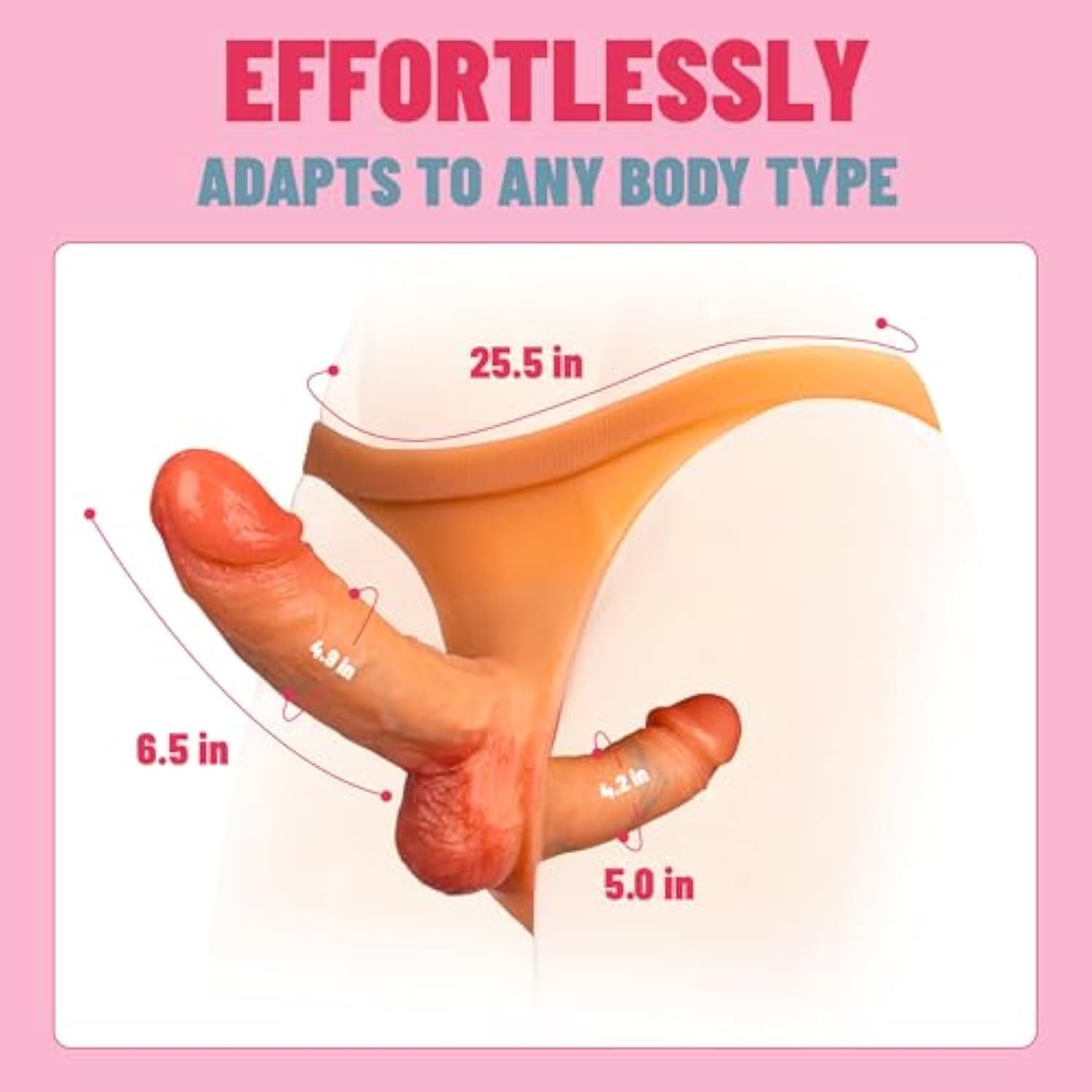 | Double-Ended Dildo With Two Sizes: Features A Unique Double-Ended Design, One Side Measuring 6.5 Inches, The Other 5 Inches | | Ultra-Soft Elastic Silicone: Made Of Premium, Body-Safe Silicone That’S Ultra-Soft And Elastic, Providing A Comfortable, Realistic Feel That Moves Naturally With Your Body | | Realistic Texture Big Thick Heads: Crafted With Lifelike Veins, Contours, And Thick Dual Tips, Delivering A Realistic Look And Feel To Heighten Stimulation For Both Partners | | Hands-Free Strapless Panties Design: Innovative Wearable Panties Style Keeps The Dildo Securely In Place, Freeing Your Hands For More Exploration And Effortless Movement During Play | | Ideal For Women, Couples, Lesbian Trans Play: Versatile Design Suited For All Types Of Partners And Fantasy Scenarios, Enhancing Intimacy And Pleasure For Women, Couples, Lesbians, And Transgender Experiences | |