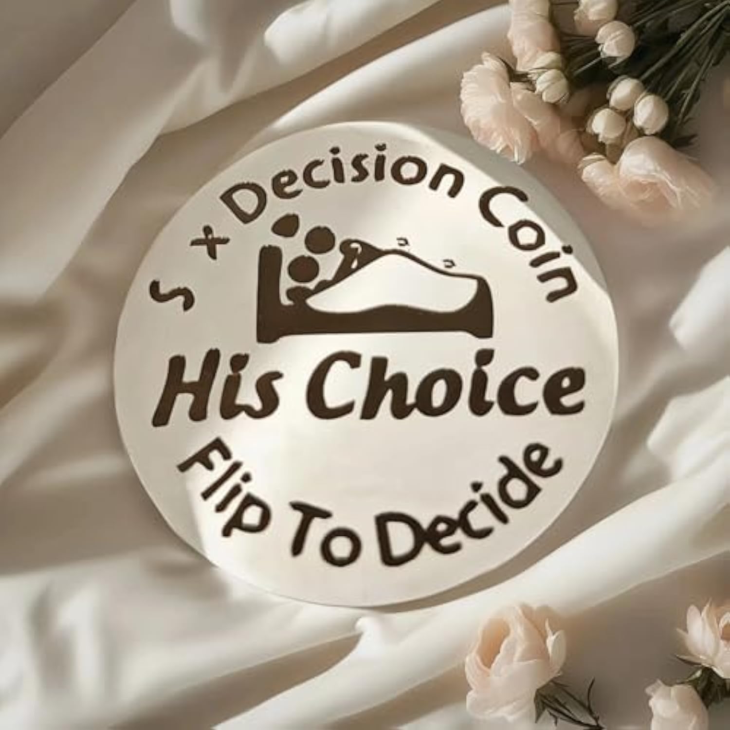 | Unique Decision Making Function: Designed For Couples To Decide Whether To Listen To Him Or Her By Flipping A Coin In Intimate Moments, Adding Fun To The Interaction And Resolving Differences In Choices. | | Clear Pattern Logo: One Side Is Engraved With “His Choice” And Cozy Sleep Pattern, The Other Side Is “Her Choice” And Corresponding Pattern, Intuitive Design, So That Decision-Making Is Clear At A Glance. | | High-Quality Material: Made Of Durable Metal With Fine Treatment, Smooth Surface, Good Texture And Durability To Withstand Frequent Daily Use. | | Compact And Portable Design: Diameter Of About 3Cm (1.18 Inches), Small And Lightweight, Easy To Carry, Whether At Home Or On The Go Travel, You Can Always Take It Out To Make Decisions. | | Romantic Emotional Boost: It Is A Romantic Item For Couples And Couples, Which Not Only Solves The Decision-Making Problems, But Also Enhances The Interaction And Feelings Between Each Other, Adding A Special Flavor To The Intimate Relationship. | |