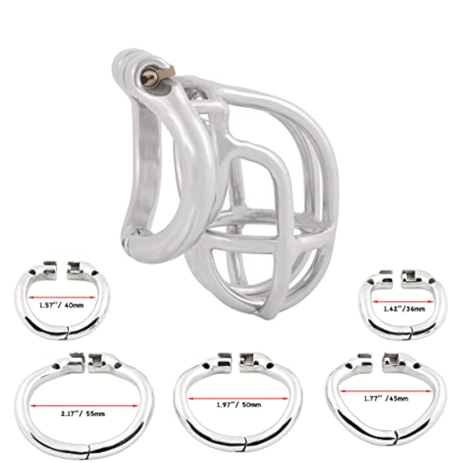 | Ergonomic Design, Easy To Wear Curved Split Ring , More Comfortable Than Common Chastity Device. | | Real Stainless Steel, Not Plating And Hypoallergenic, Manual Mirror Polished, More Sleek, More Comfortable. | | Stealth Lock Design, No Sound Of Metal Colliding With Each Other, More Protective Of Your Privacy. | | Chastity Cage Has 5 Different Sizes Of Rings To Meet Your Size, Fit For Most People. | | Protect Privacy: Opaque Package, Product Information Won’T Be Shown In The Package Or Customs Declaration. | |