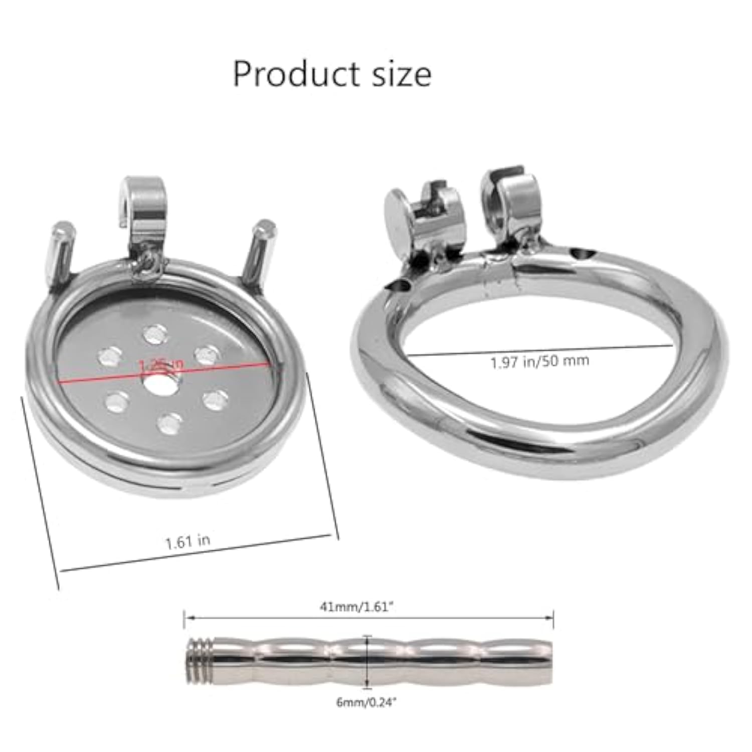 | 100% Brand New. High Quality Stainless Steel, Non-Plated, Hypoallergenic | | Hand Polished, Very Smooth Surface. | | 4 Different Ring Sizes Available (1.57”/ 1.77”/ 1.97”/ 2.17”) Choose The Suitable Inner Diameter. | | Discreet Packaging: Opaque Packaging That Hides Markings And Details Of The Contents | | The Package Only Includes A Set Of Cock Cage: 1 Separate Cage + 1 Base Ring + 1 Brass Lock + 2 Keys + 1 Catheter | |