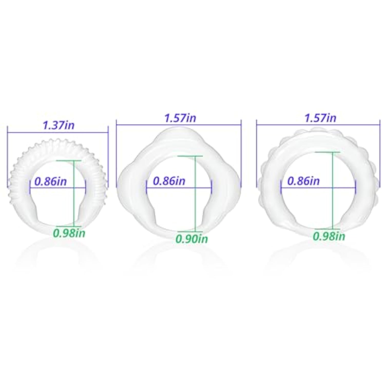| Different Sizes: 3 Pcs Cock Rings Are Different Sizes To Meet Most People’S Body Type Requirements. And Each Size Has A Different Degree Of Elasticity, Which Can Provide Different Pressure On The Penis And Bring Different Pleasure | | Multiple Ways Of Wearing: Choose The Way Of Wearing The Cock Ring That Gives You The Most Excitement And Have Fun! The Cock Ring Set Is Available In A Variety Of Different Combinations. You Can Wear Just A Single Cock Ring Or Multiple Cock Rings On Your Penis, Or Wear Separate 3 Cock Rings On Your Glans, Root Or Testicles | | Different Shapes: The 3 Mens Cock Rings Have Different Shapes, When You Wear Them, The Different Shapes Can Bring Different Stimulation Feelings To Your Lover, Enhancing Your And Your Lover Pleasure Experience And Enriching Sexual Pleasure | | Bigger, Stronger, Longer: The Penis Ring Slows Down The Blood Flow, Making Your Penis Harder And Bigger, Erections Last Longer, Making Orgasms Last Longer And Couples Sex Better | | Hiigh Quality Material: Tpe Is Waterproof And Easy To Clean And Maintain Afterwards. Also, Compared To Metal Penis Rings, Tpe Penis Rings Are Flexible And Equally Smooth, Making Them Very Easy To Wear | |