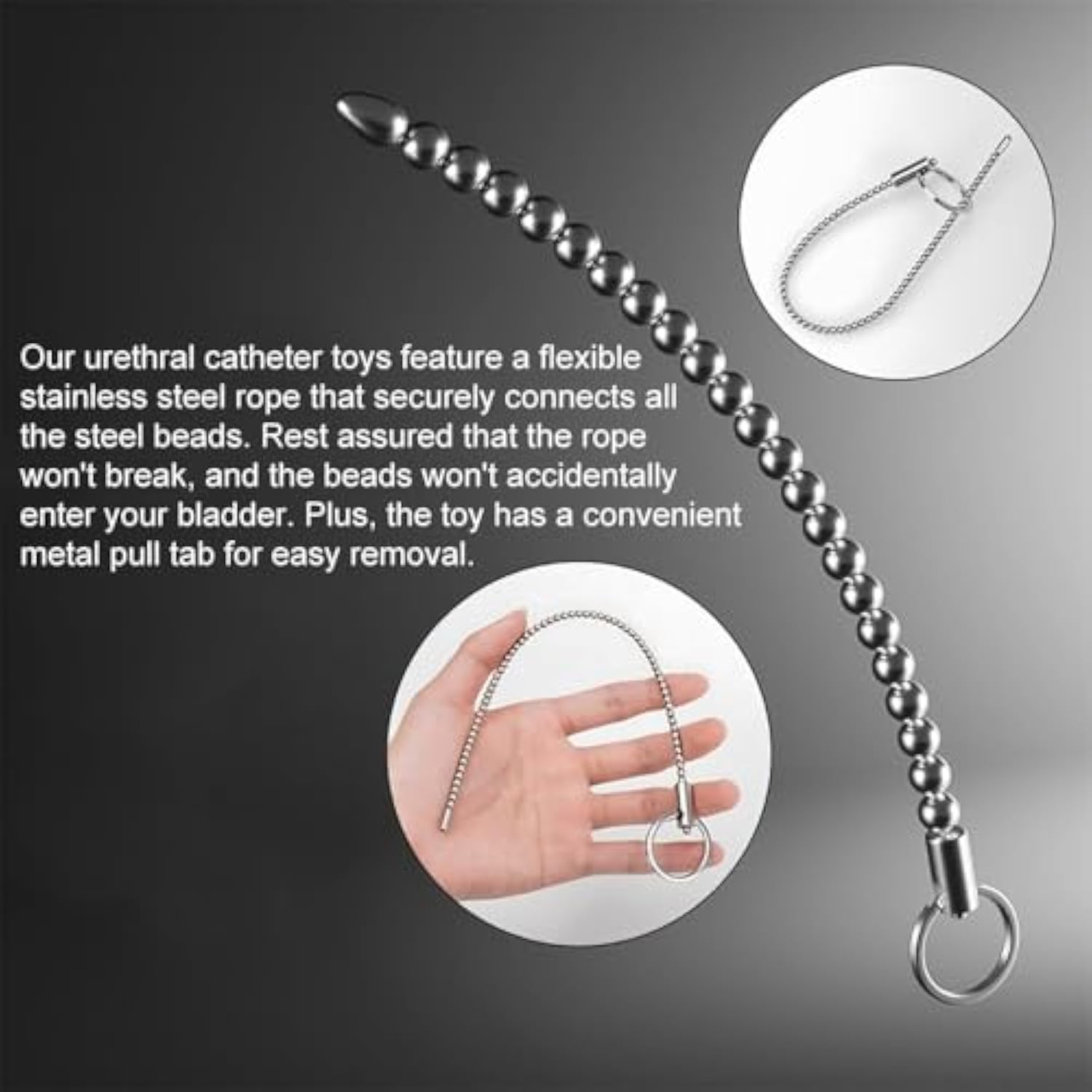 | Multi Beaded Design: Multi Beads Is Quite Smooth, Nice Touch Feelings And Convenient To Insert Inside. Multi Bead Can Stimulate Your Urethra Again And Again During The Insertion Process, Making It Easier For You To Get An Orgasm | | Experience An Explosive Orgasm: The Urethral Sounds Dilator Is 8.85 Inch Long And 5 Diameters To Choose From: 5Mm, 6Mm, 7Mm, 8Mm, 10Mm,You Can Gradually Explore And Expand Your Urethral Size. It Can Fully Stimulate The Nerve-Rich Erogenous Zone, Allowing You To Experience An Explosive Orgasm And Improved Sexual Response | | Durable And Safe Design: Our Urethral Catheter Toys Feature A Flexible Stainless Steel Rope That Securely Connects All The Steel Beads. Rest Assured That The Rope Won’T Break, And The Beads Won’T Accidentally Enter Your Bladder. Plus, The Toy Has A Convenient Metal Pull Tab For Easy Removal | | Instructions For Use: Please Clean With Hot Water Before Use. Adding A Water-Soluble Lubricant During Use Improves Comfort. Pay Attention To The Intensity Of Use And Choose The Appropriate Intensity According To Your Physical Condition. If You Feel Unwell During Use, Stop Using It Immediately | | Discreet Packaging And Support: Your Privacy Matters To Us. We Provide Neutral Packaging Without Any Trade Names. If You Have Any Questions Or Concerns, Our Dedicated
