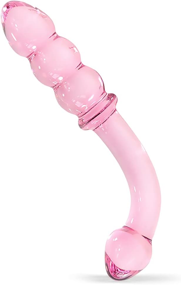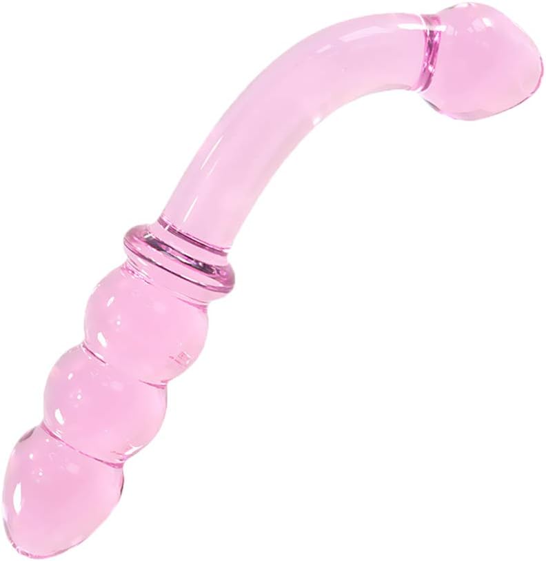 • Bent Double-Ended Glass Dildo: One end of the glass dildo is a rounded head which makes it easier to insert. The other end is a anal graduated beads shape, giving you more sexual stimulation when you use it. The straight shaft acts as a textured dildo, providing you with mind-blowing stimulation. Turn it around and use the curved design to hit your G-spot.