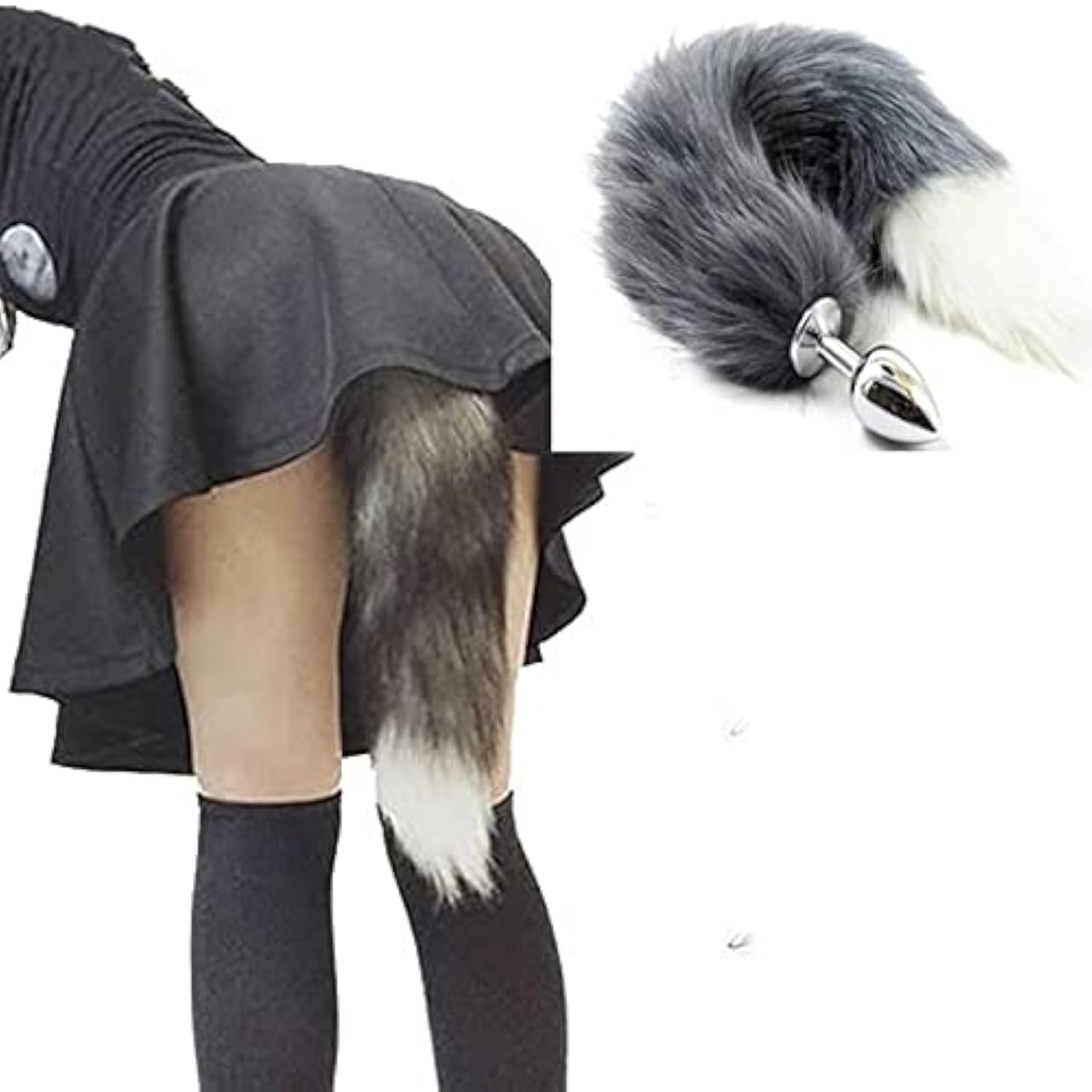 Gray Tail Anal Plug Sexual Set, Sex Toy Of Butt Plug With Tail For Cosplay (Wolf Tail, Small)