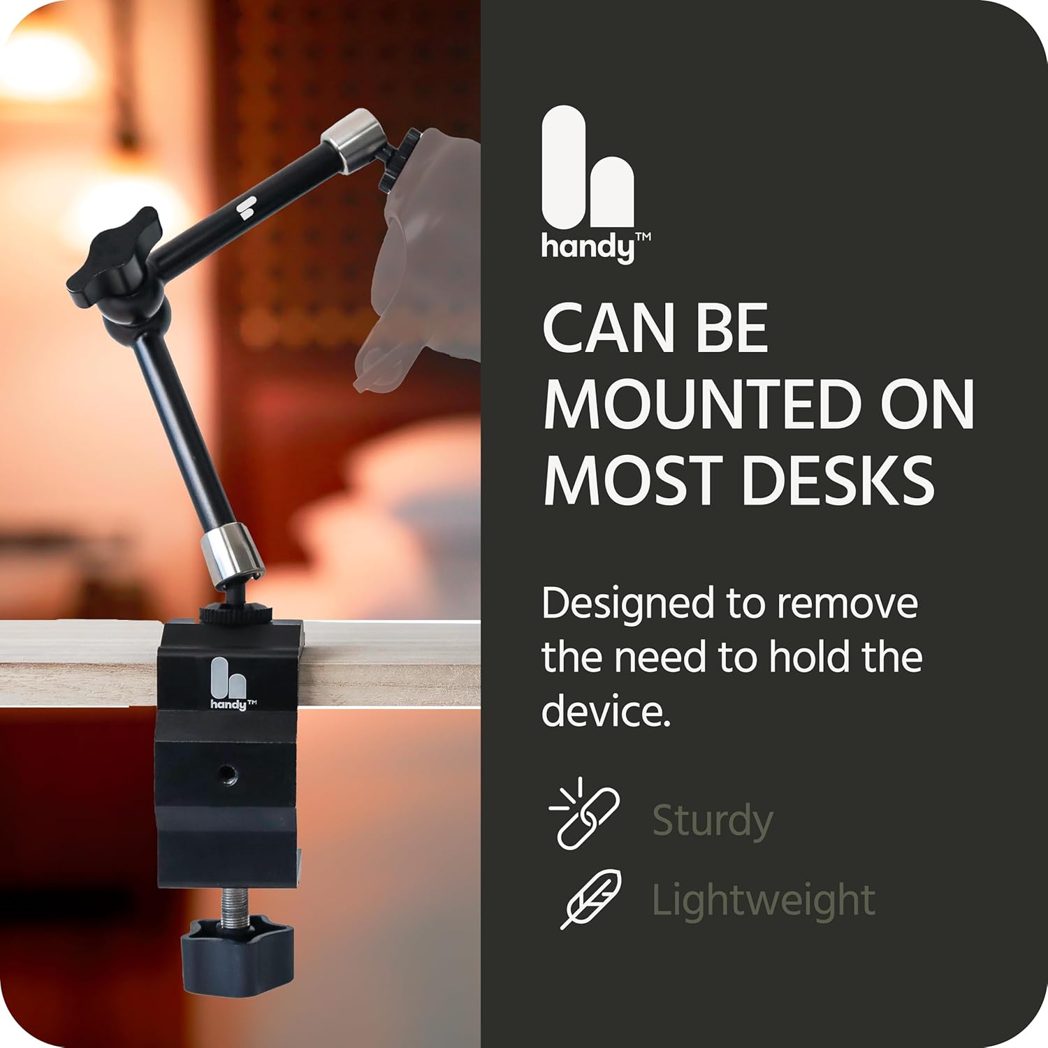 EASY, ADJUSTABLE POSITIONING – The Handy adjustable desk arm mount can hold up your Handy at any angle based on your requirements. Adjust it accurately with one knob to knock or release your desired position.
