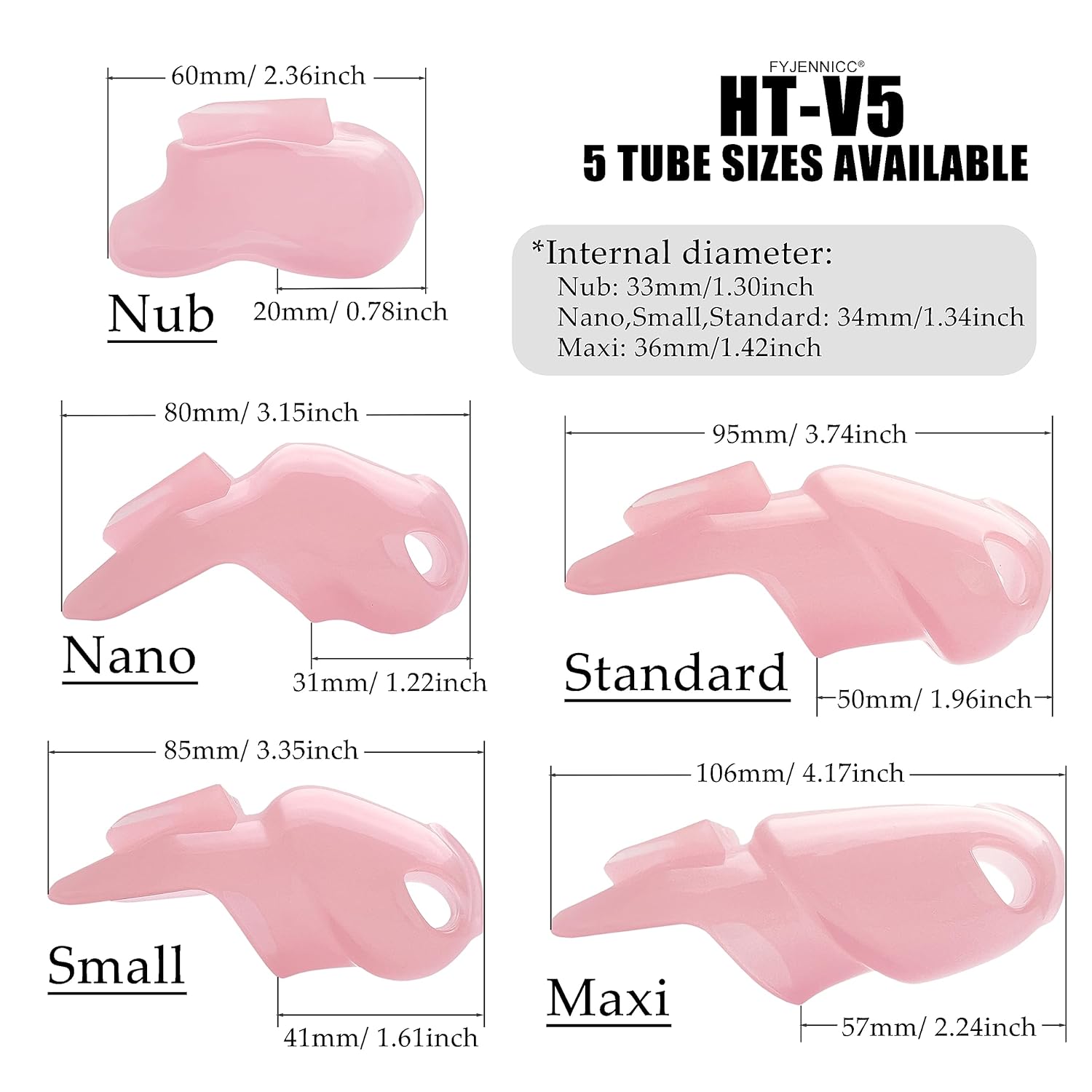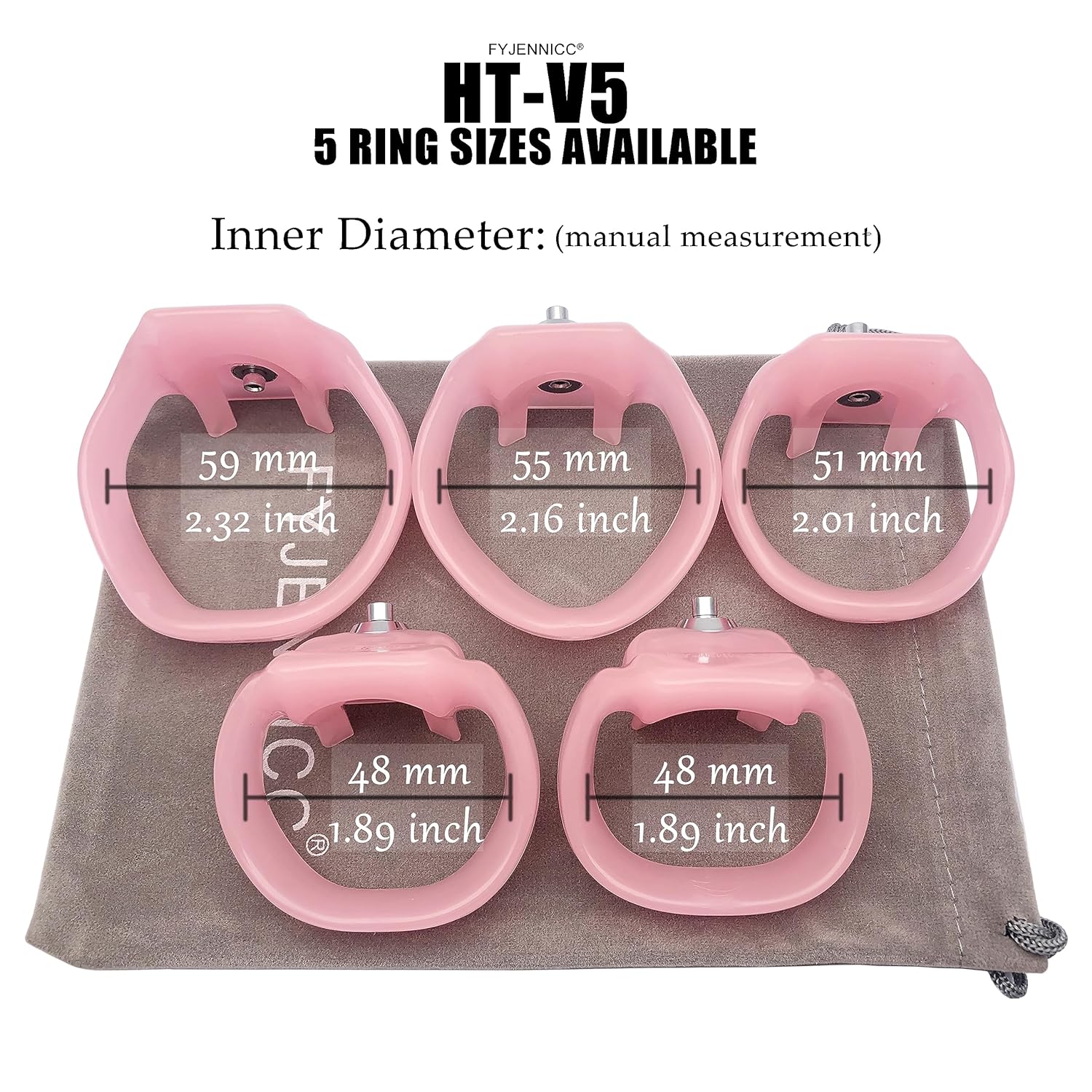 Ht-V5 Chastity Cage | Lightweight Cock Cage | Resin Chastity Devices | Male Chastity Cage | Adult Sex Toy For Men | Click&Locked Key | 5 Sizes Rings Included (Pink, Standard)
