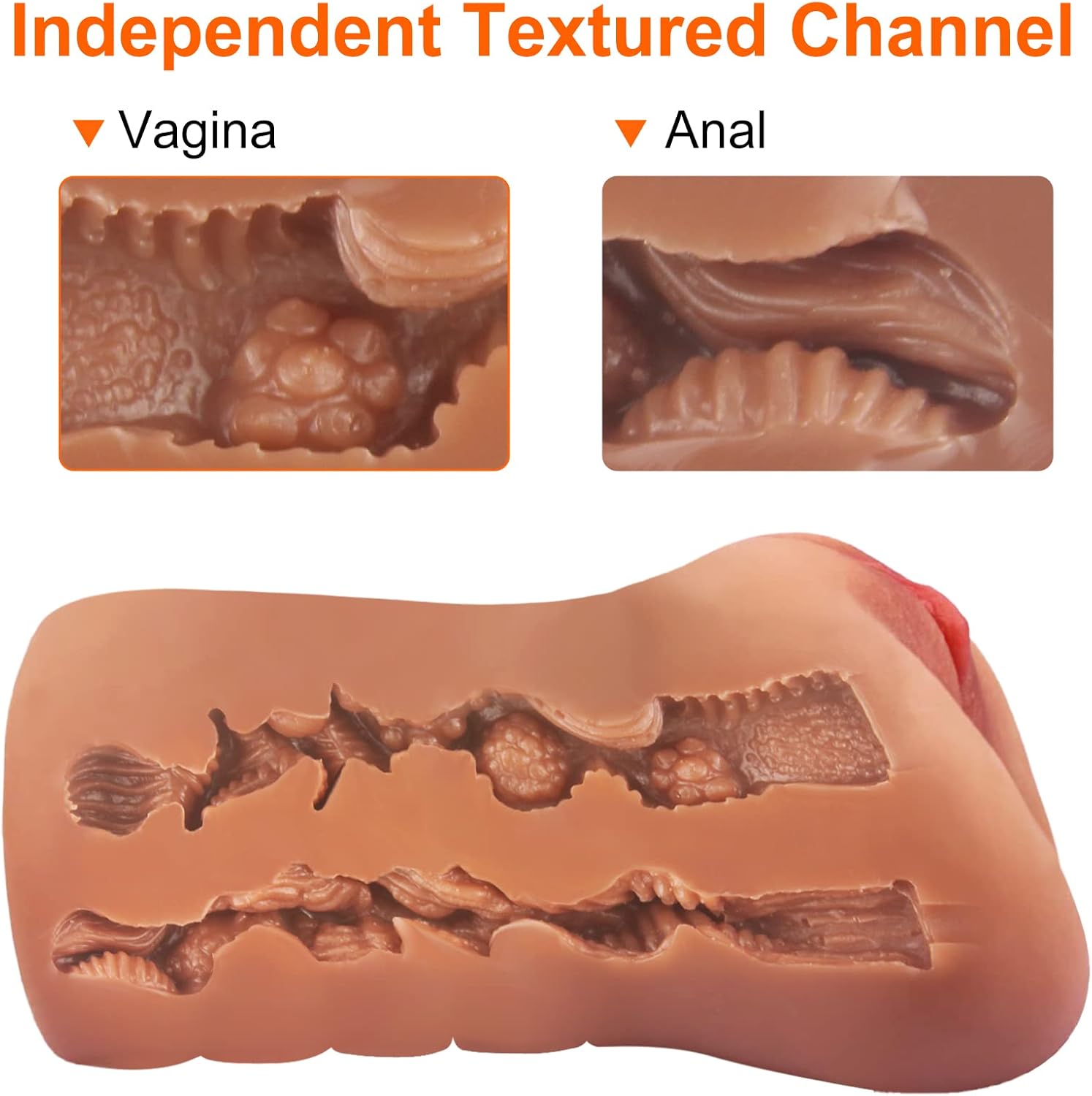 Independent Dual Channels: 2 in 1 pocket pussy, the tight vagina and anal have powerful suction and clamping. The protrusions and particles on the internal tunnel fully satisfied your desire. Coming to life throughout and ready to show you the wild times