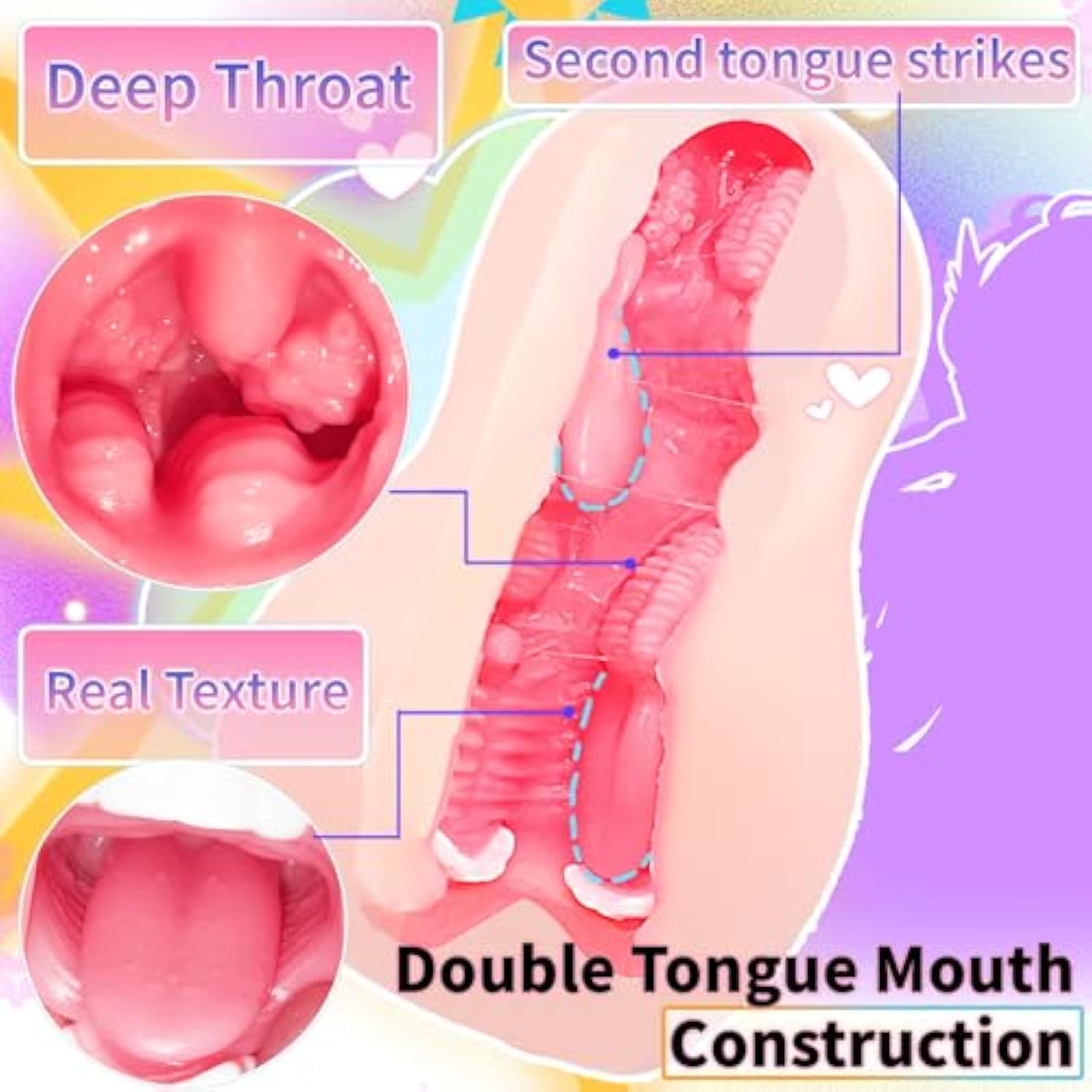 | Unique Double Tongue Design: This Mouth Male Masturbator Features Two Tongues, With The First Tongue In The Oral And The Second In The Deep Throat, Creating A Double Tongue Structure. The Design Of The Two Tongues Provides A Greater Sensation Of Tongue Envelopment, Doubling The Stimulation And Offering A Unique Experience When Entwined By Both Tongues. | | Realistic Internal Textures: Soft Teeth And Two Tongues Wrapping Around You, With A Large Granule Channel In The Deep Throat Awaiting Your Entry. You Can Experience The Sensation Of Lingering Between Two Realistic Tongues, Unlocking The Double Tongue And Deep Throat Experience. The Tight Textured Channel And Realistic Internal Textures Work Together To Stimulate Your Senses. | | Channel Structure: With An Internal Channel Length Of 6.97 In, The Process Of Transitioning From The First Tongue To The Second Tongue Is Akin To Exploring The Deep Throat, Adding A Sense Of Mystery And Ensuring Each Experience Is Different. | | Safe Material And Size: This Male Adult Toy Is Made Of High Elasticity And Safe Tpe Material, Providing Soft Flexibility. Size, Length: 6.97 In, Width: 4.14 In, Height: 3.66 In, Channel Length: 6.22 In, Weight: 1.46 Lb, It Is Suitable For Most Male. | | Superb Packaging And Sincere Service: Our Male Toy Are Made With Superb Engineering Technology And High Quality Craftsmanship, And Each Product Undergoes Strict Quality Inspection. Exquisite Packaging Is Not Only The Protection Of The Product, But Also The Blessing Of A Better Life. If You Have Any Questions, Please