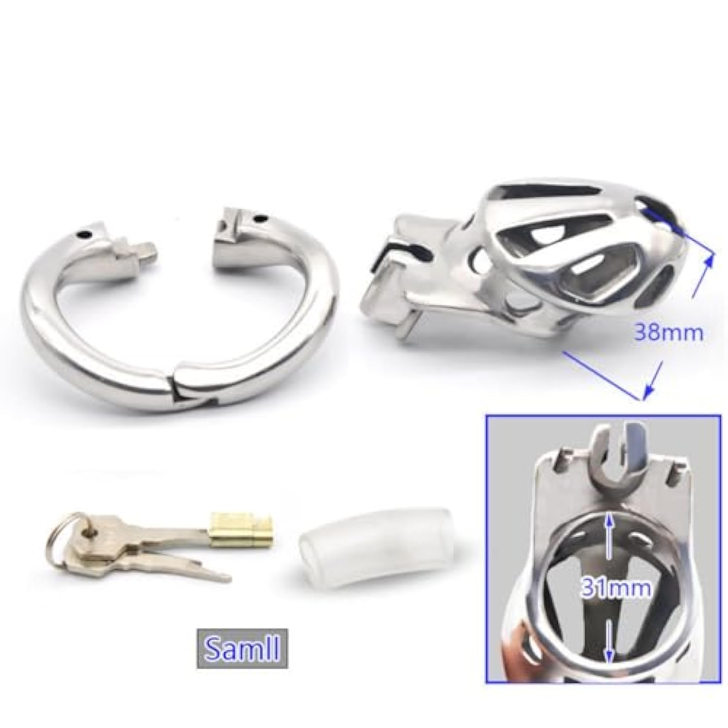 | Cage Style: S/L; Ring Size: 38Mm/43Mm/48Mm/52Mm | | Open Design Movable Ring Makes It Easy To Enjoy Being Locked! | | The Thoughtful Tpe Bushing Is Soft And Comfortable, No Hair Or Meat Caught, Life Is Not “Painful” From Now On! | | Upgraded Locking Method! Conveniently Lock Your Little Brother! | | Continuing The Classic Breathable Design, Let Your Little Brother Breathe And Enjoy The Fun! | |