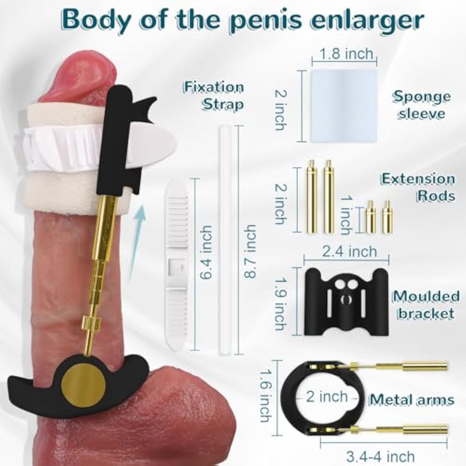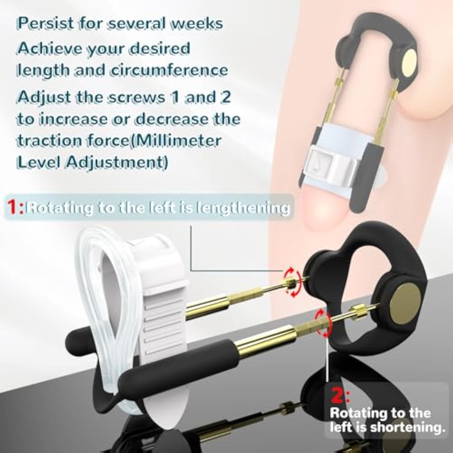 | Precision Adjustable Pennis Extension: Experience A Truly Personalised Stretch With Our Adjustable Penis Extender. Simply Twist The Precision Knob To Increase The Tension And Lengthen Gradually To Your Desired Length — No Additional Tools Required! Whether Your Goal Is Gradual Enhancement Or Improved Curvature, This Portable Stretcher Can Be Adapted To Suit Your Needs And Preferences | | Enjoy Ergonomic Comfort And A Secure, Non-Slip Fit. The Streamlined, Ergonomic Base Ring Is Designed For All-Day Wear And Moulds To Your Body Without Creating Pressure Points. Meanwhile, The Silicone Band Holds All The Pieces Securely In Place, Even During Light Activity, So You Can Focus On Making Progress, Not Readjusting | | Unrivalled Black And Gold Aesthetics And Quality Construction: Our Sleek Black And Gold Traction Kit Adult Sex Toys Pair A Matte Black Abs Plastic Frame With Gleaming Nickel-Plated Brass Rods To Create A Bold, Long-Lasting Look. Unlike Other Penis Stretcher Devices With Exposed Threads, Ours Has A Smooth Metal Rod So You Can Wear It Without Worrying About It Rubbing Against Your Skin | | Simple To Install And Easy To Operate: The Penis Extender Takes Less Than Two Minutes To Set Up: Snap On The Helmet, Slide In The Bar, Attach The Strap, And You’Re Ready To Go. The Concise Instruction Guide Will Talk You Through The Best Way To Use It, Ensuring You Start Using It Safely And Securely | | Confidential Packaging And Travel-Friendly Design: To Protect Your Privacy, This Compact Penis Pump Comes In A Plain Box, So No One Will Ever Know What’S Inside | |