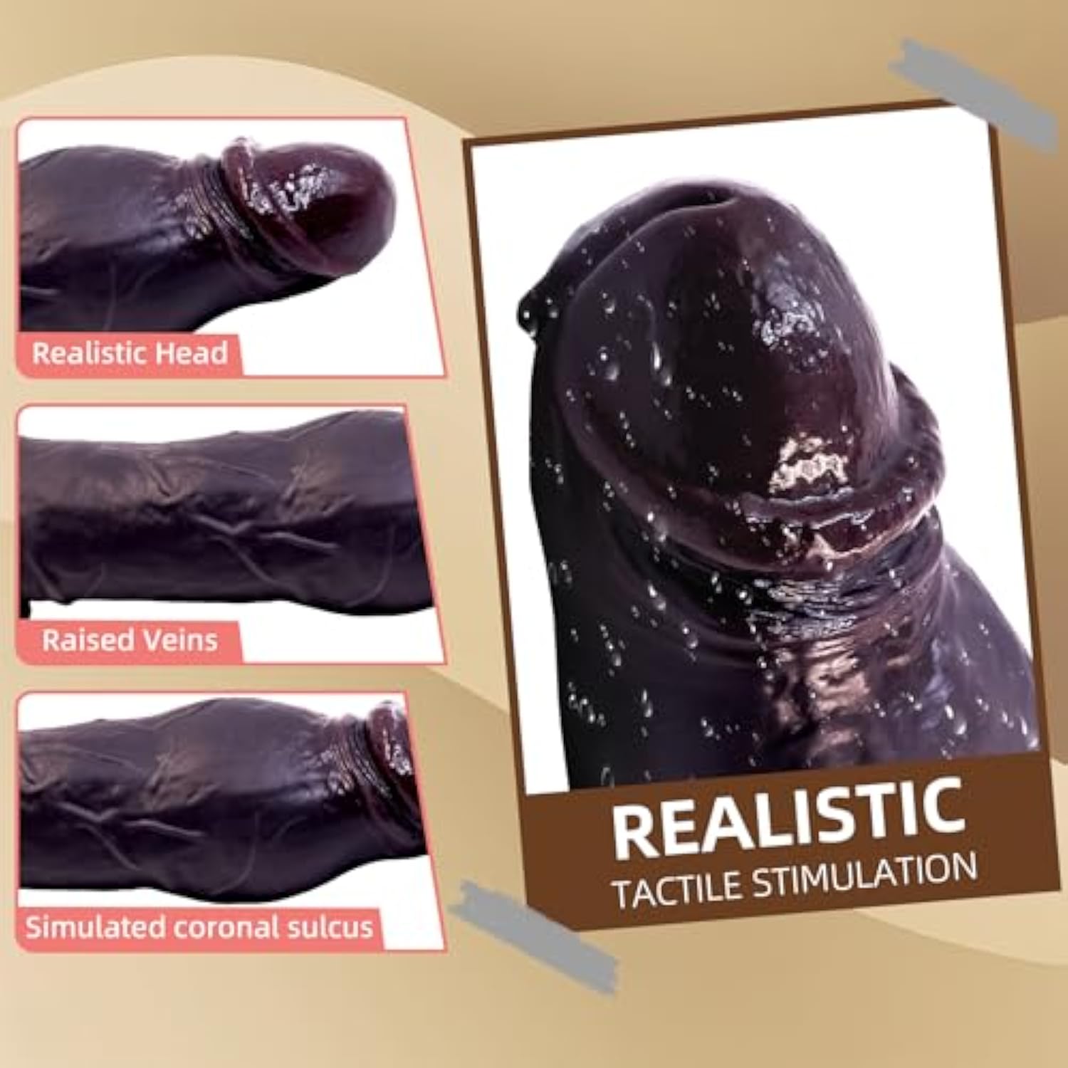 Penis Sleeve With Cock Ring Sex Toys, Ultra-Soft Silicone 8.6” Cock Sleeve, Reusable Penis Cuff Thickened Testicle Ring Male Adult Toys, Penis Extender And Penis Enlarger For Men(Brown)