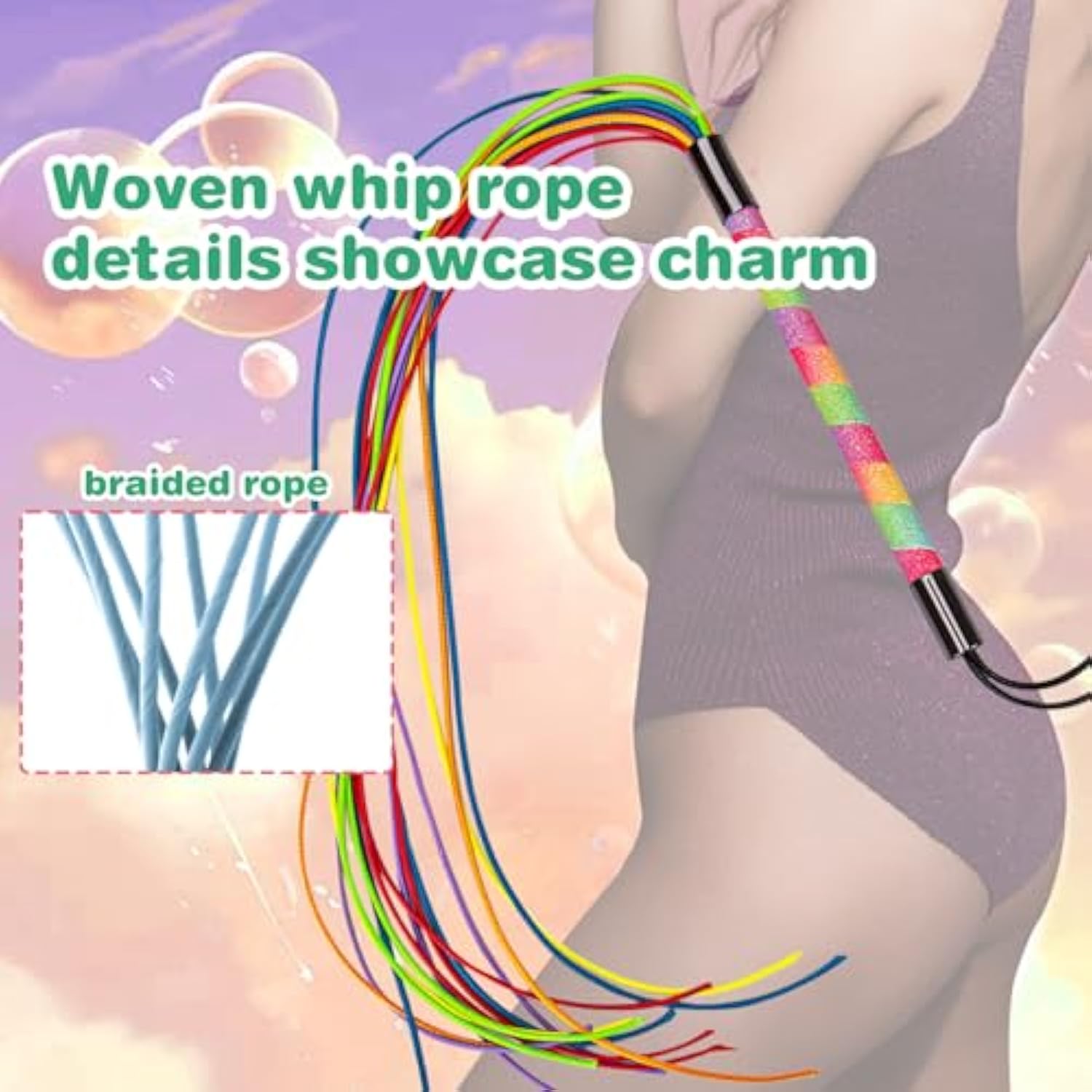 Rainbow Novel Tassel Whip With Handle Couple Flirting Whip Nightclub Bar Party Fun Accessories Female Restraint Bondage Whip Role Play Flogger Fetish S&M Flirt Tools