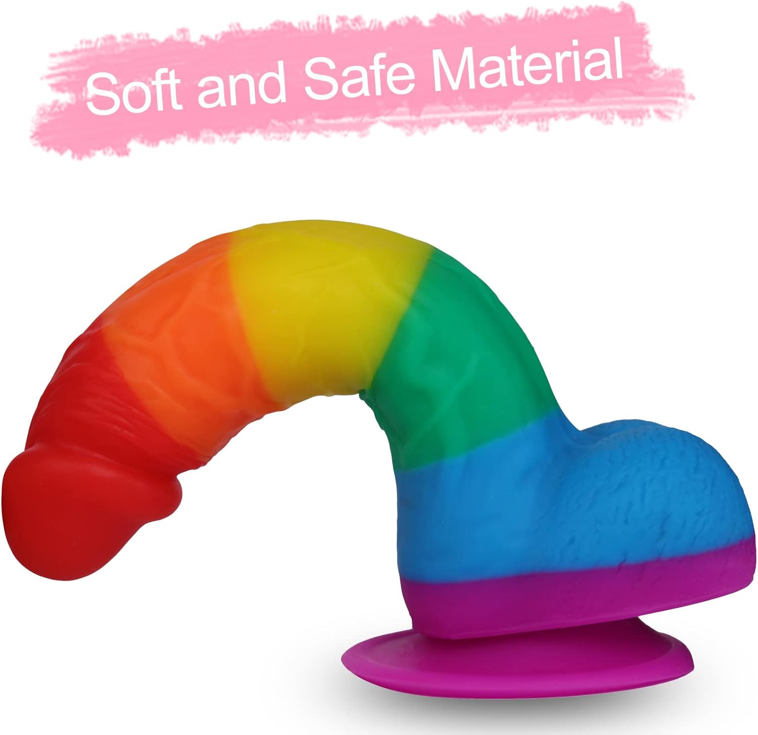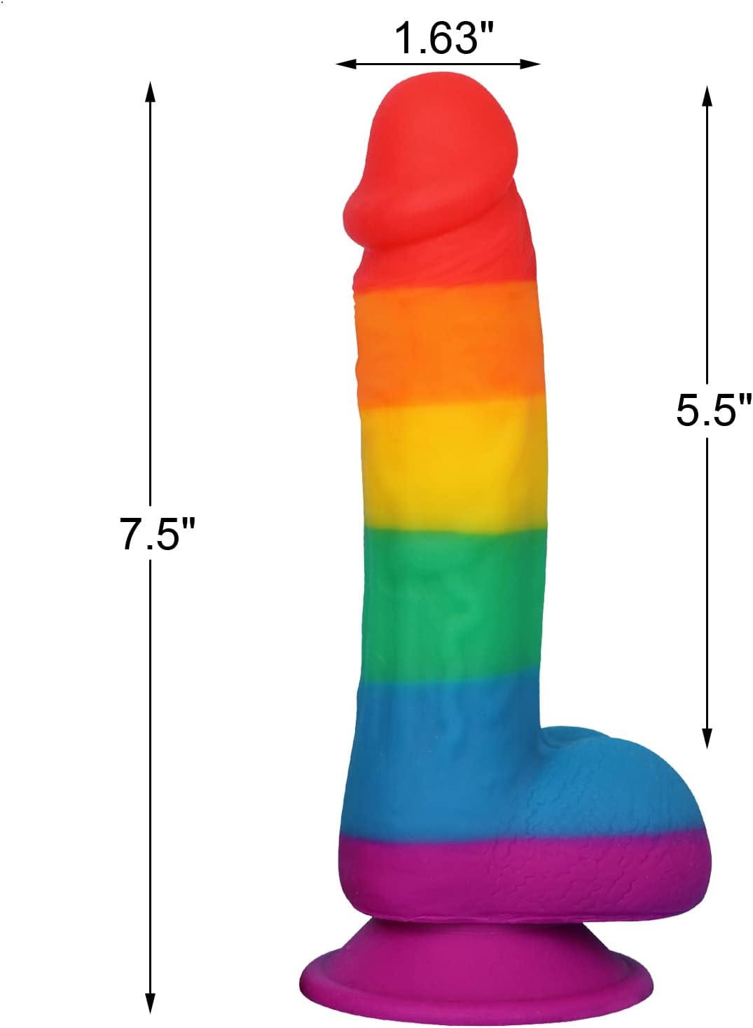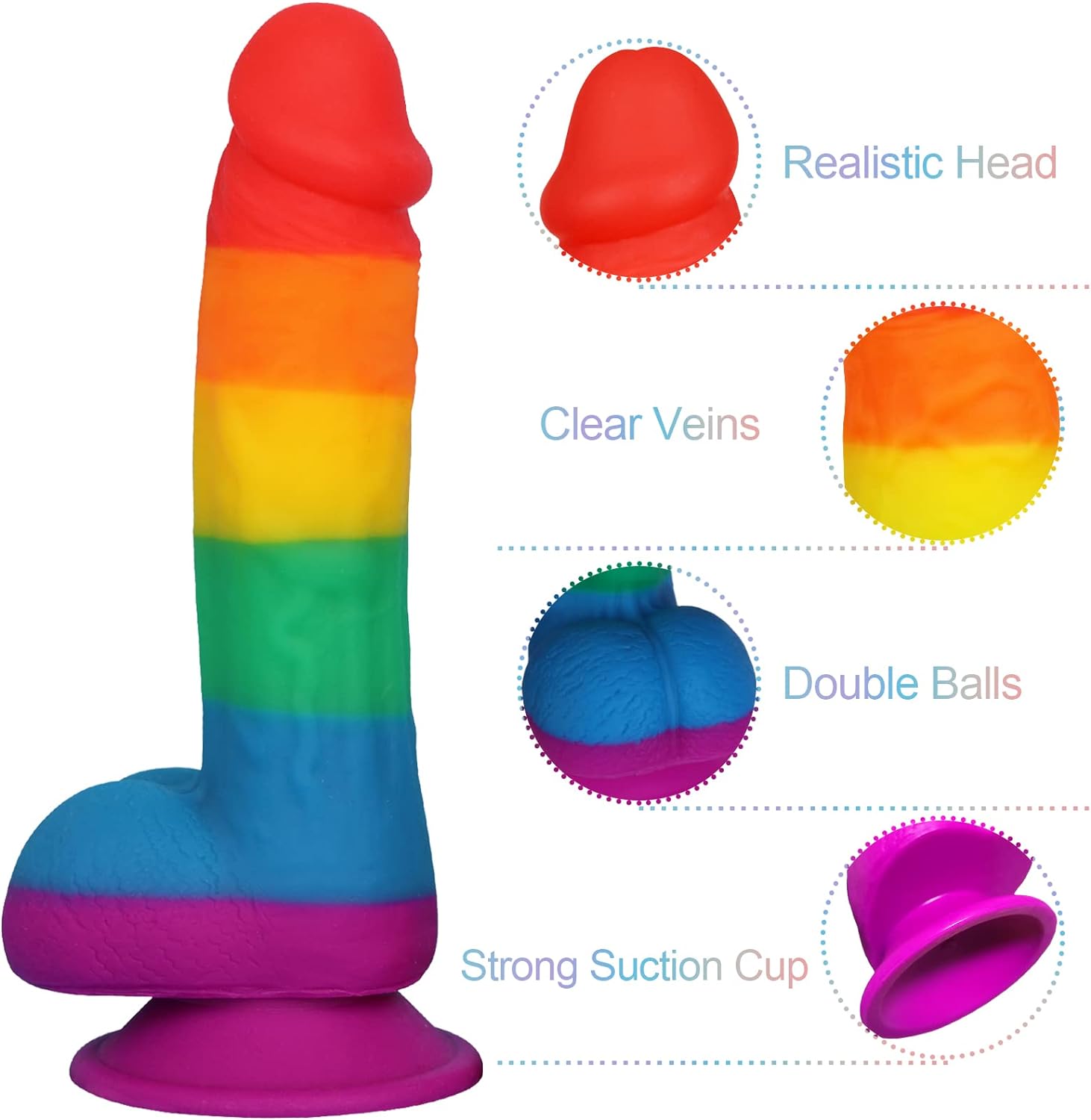 Realistic Rainbow Dildo with Suction Cup & Balls – Liquid Silicone