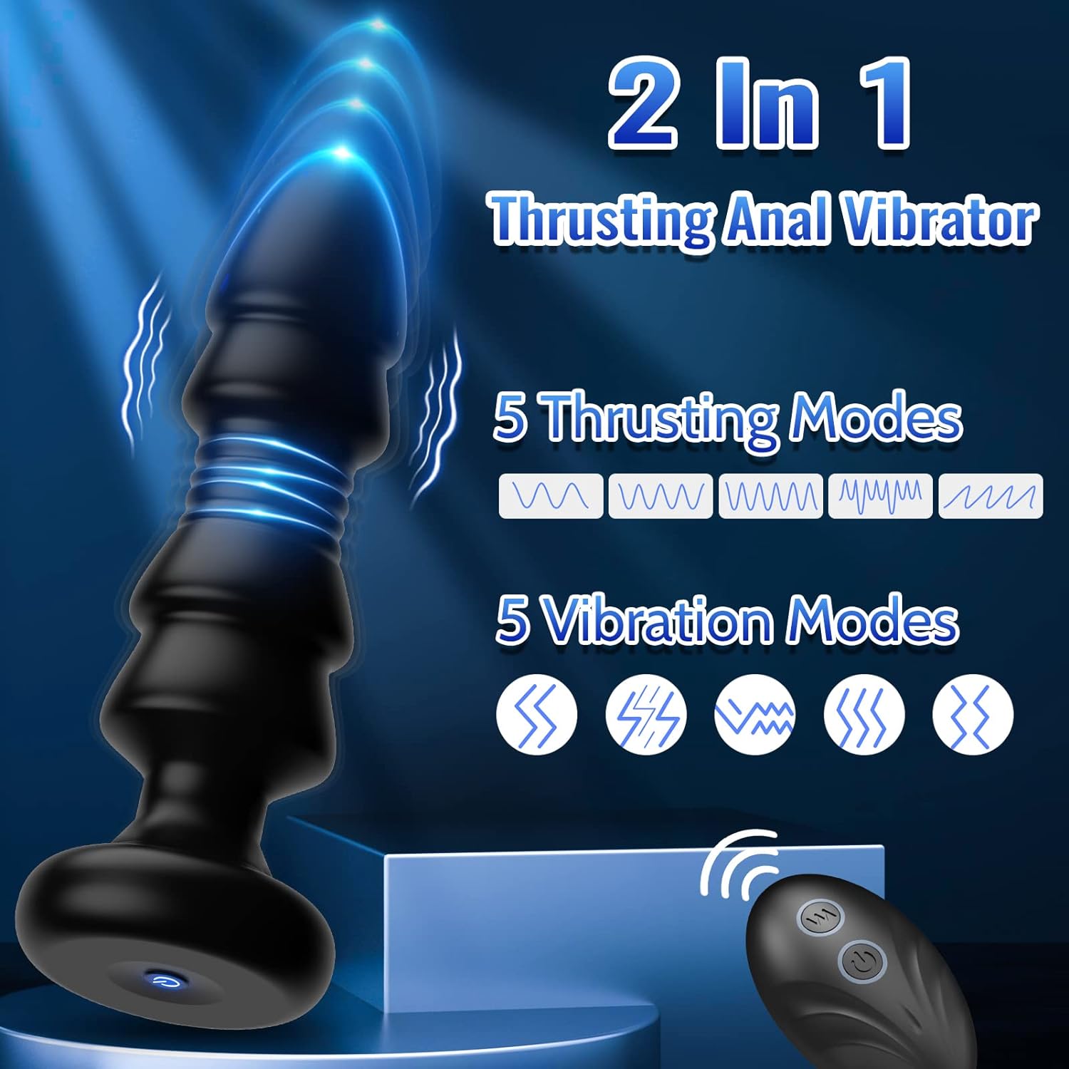 • 2 In 1 Thrusting Anal VibratorThis Anal Plug Vibrator Is Combined A Prostate Massager And Anal Plug Vibrator Together For Men And Female. This Thrusting Anal Sex Toy Is Designed With Two Motors Inside, Providing 5 Vibrating And 5 Thrusting Speeds, From Gentle To Wild, To Stimulate Your Sensitive Part For A Unique Sexual Experience.